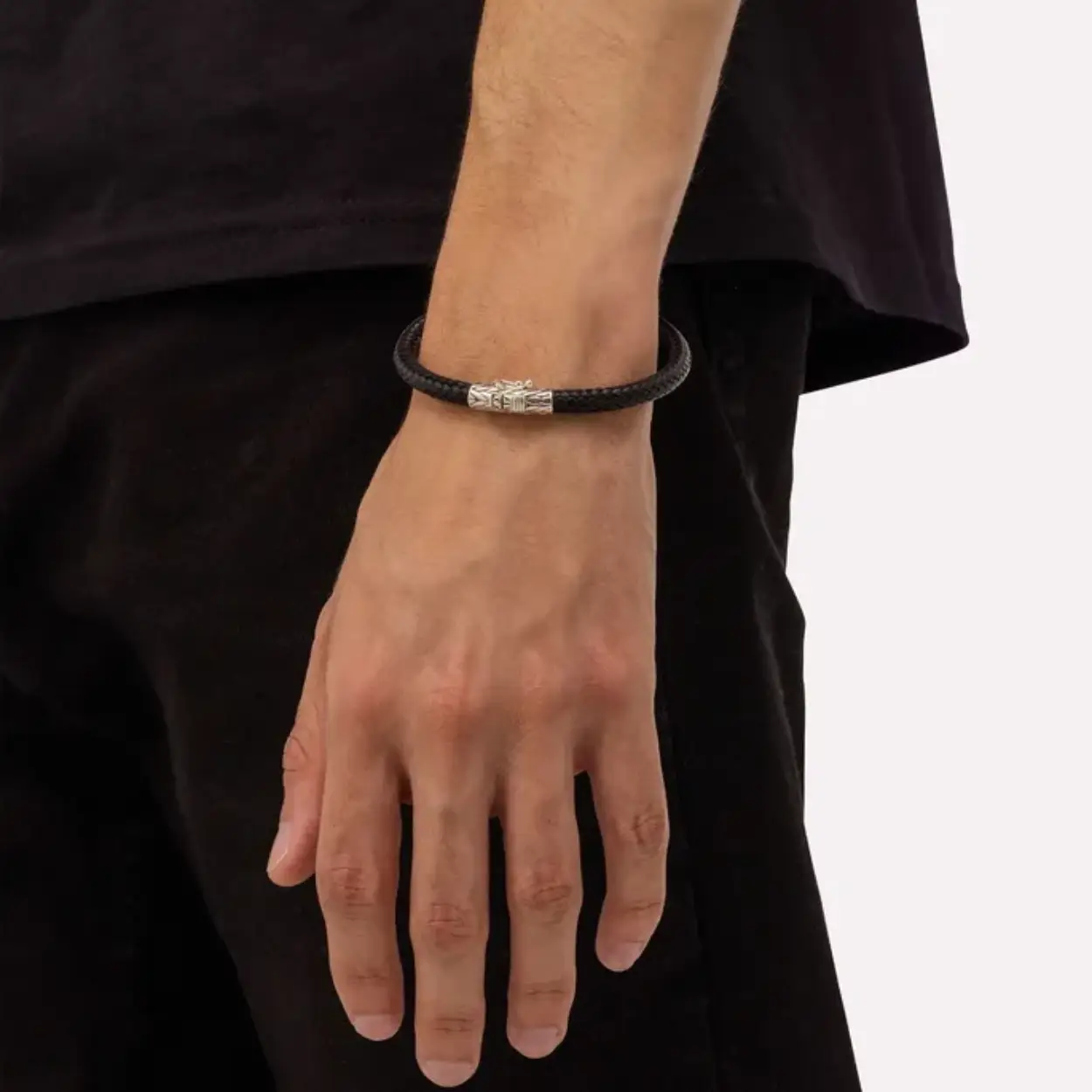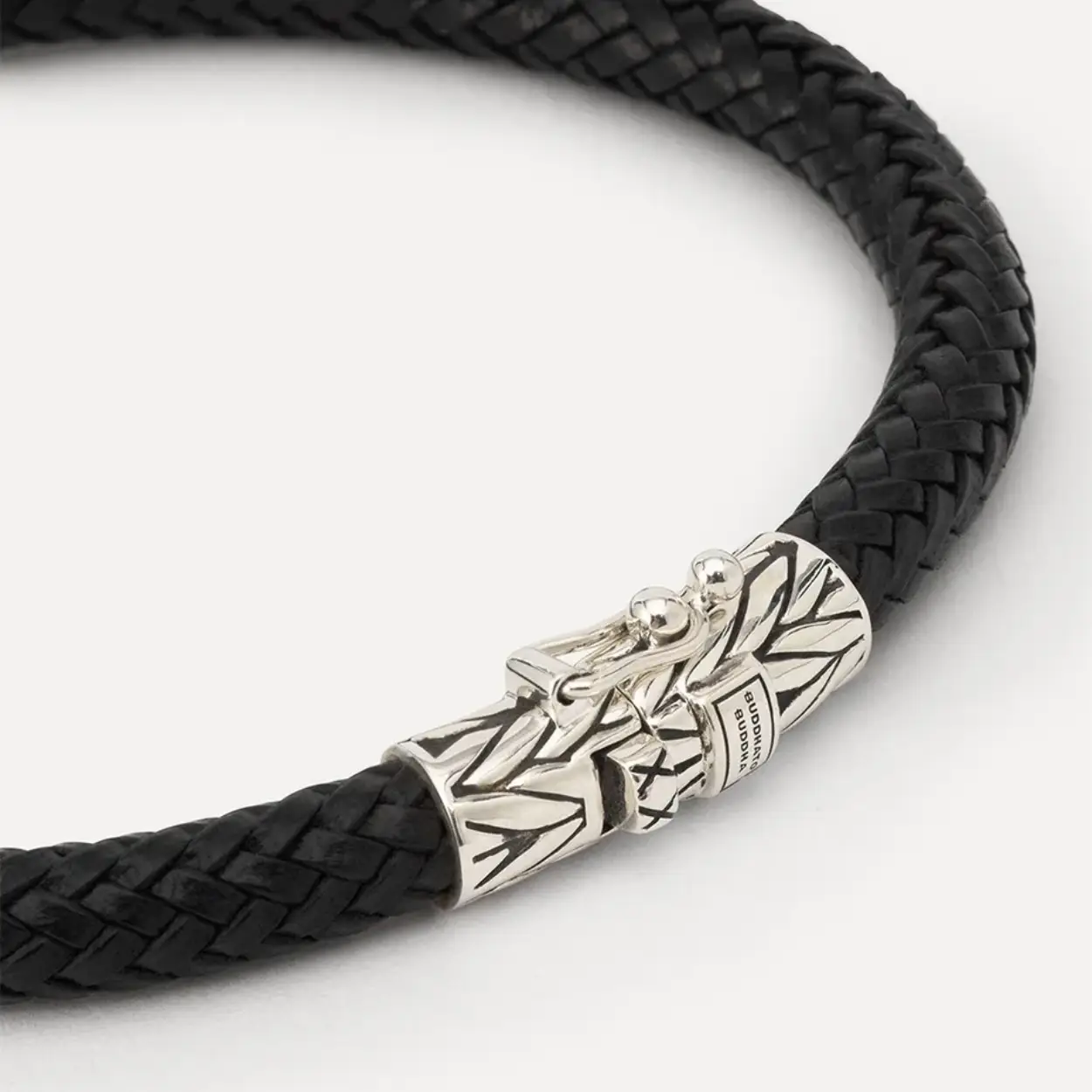 Buddha armband zwart leer met zilveren sluiting