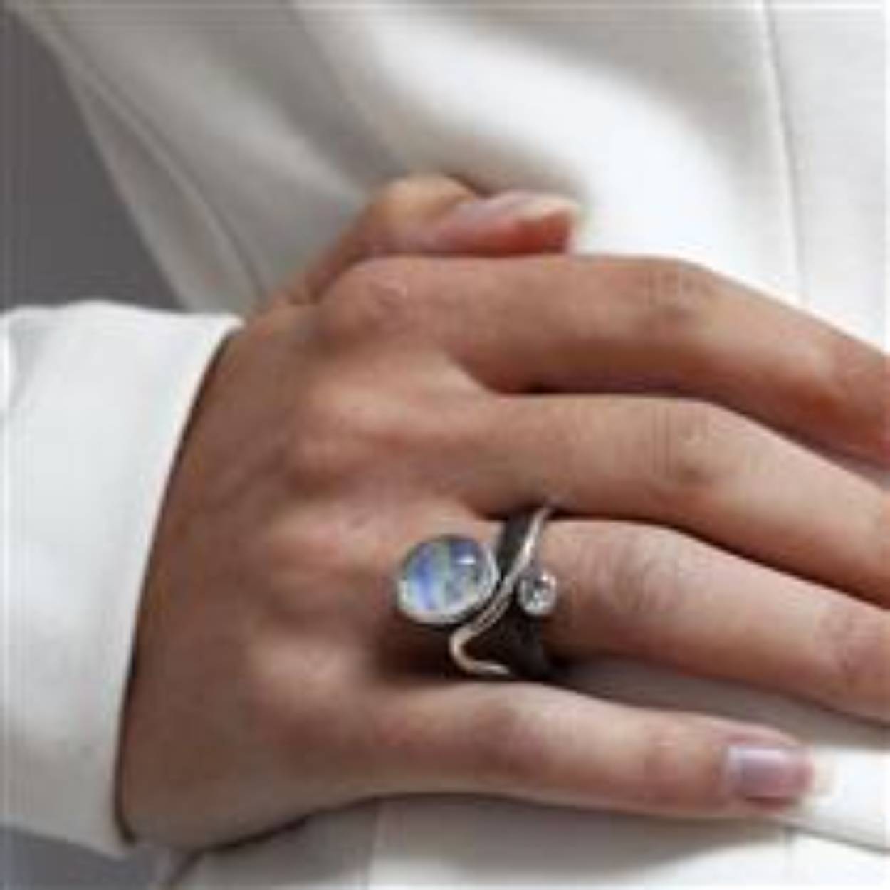 Deze sterling zilveren ring bevat een blauwe maansteen alsmede een zirkonia.