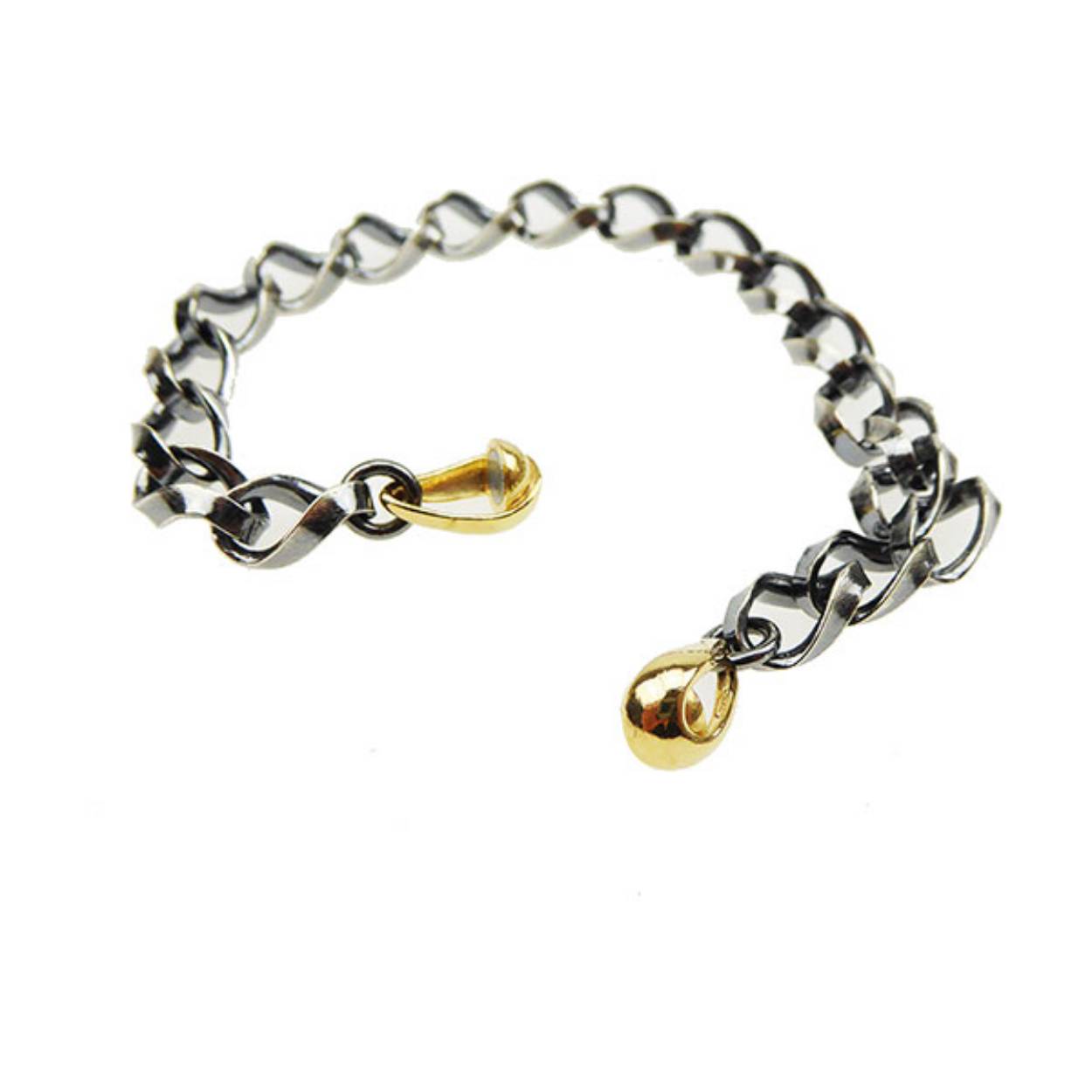 Een spannende ketting in licht geoxideerde constructie (ca. 7mm breed) met verguld magnetisch slot dat prachtig aansluit bij de ketting. Het slot is zeer veilig - kan niet uit elkaar worden getrokken - moet behoorlijk worden opgetild - allemaal gedaan in sterling zilver.