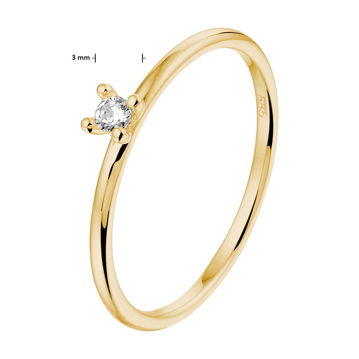 14k Geelgouden aanschuifring uitgevoerd met een schitterende zirkonia. De ring heeft een breedte van 3mm.