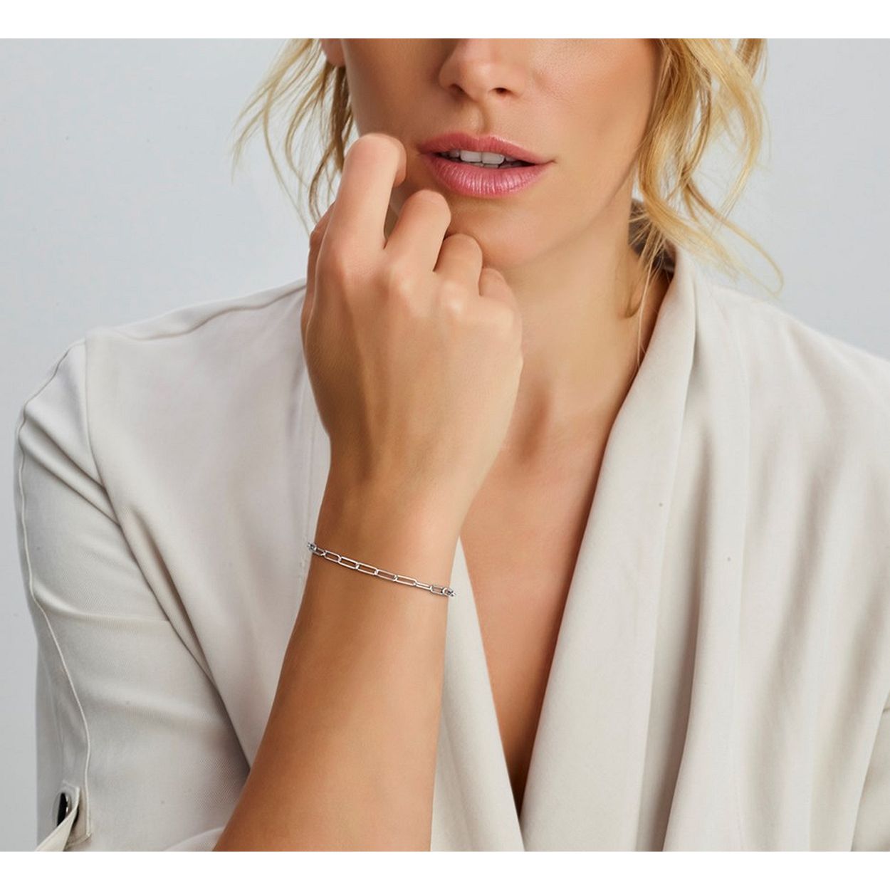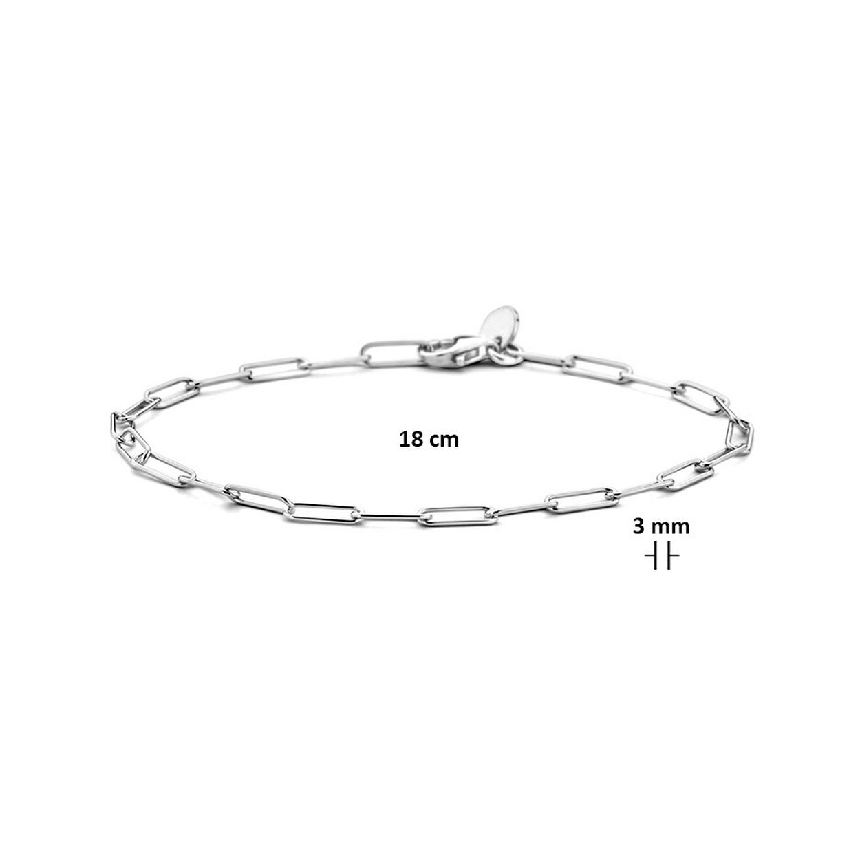 Gerhodineerd 925 zilveren armband uitgevoerd met een paperclip schakel met een breedte van 3mm. De armband heeft een draaglengte van 18cm en een stevige karabijn sluiting.