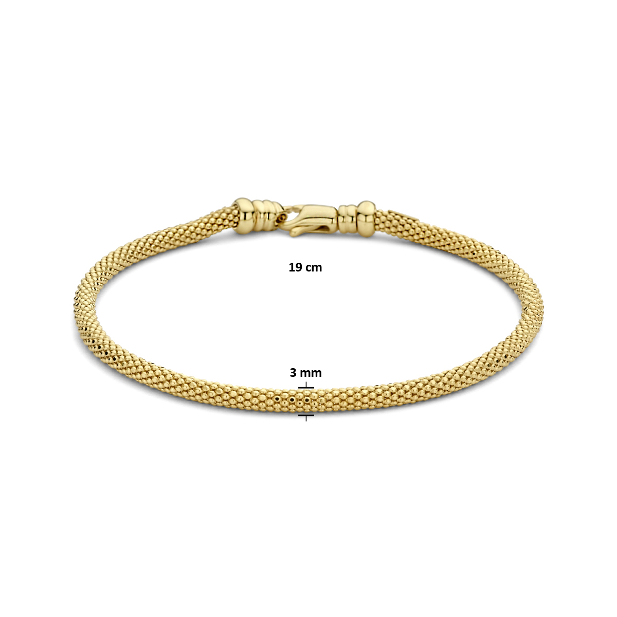 14k Geelgouden armband met een draaglengte van 19cm en een schakelbreedte van 3mm. Uitgevoerd met een karabijn sluiting.