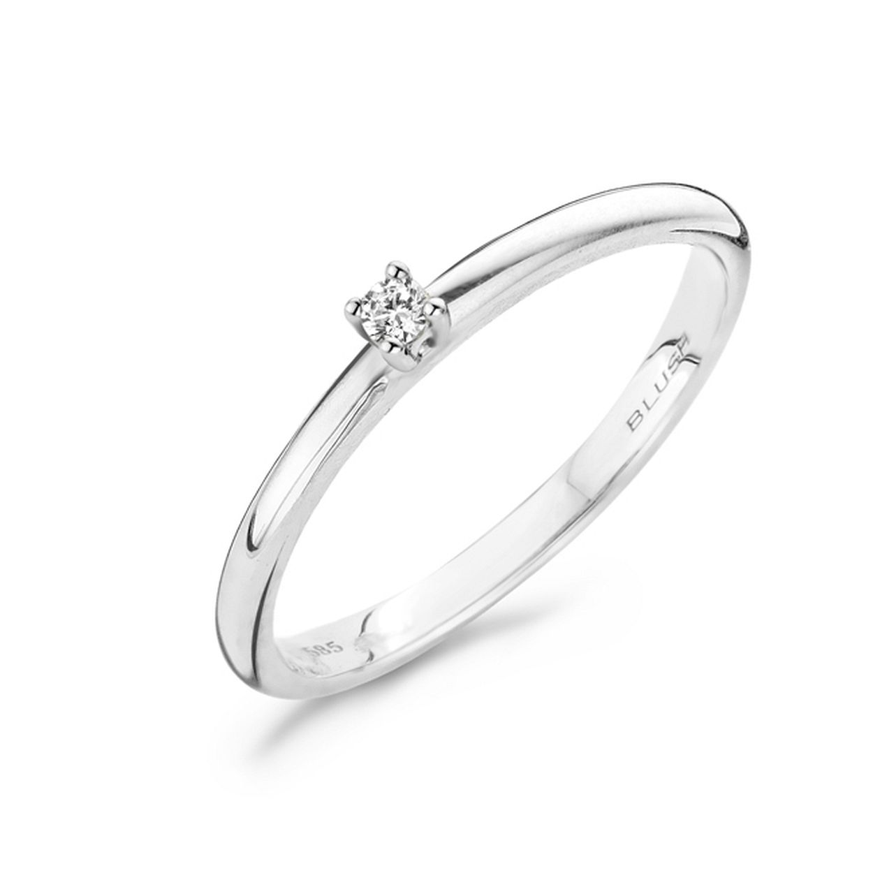 Tijdloos zilver met subtiele diamant om dagelijks te stralen! Deze 14Krt. Witgouden ring met glad gepolijst smal design heeft een moderne, elegante en klassieke uitstraling. Perfect voor de fijne damesvinger en te combineren met andere Blush sieraden.