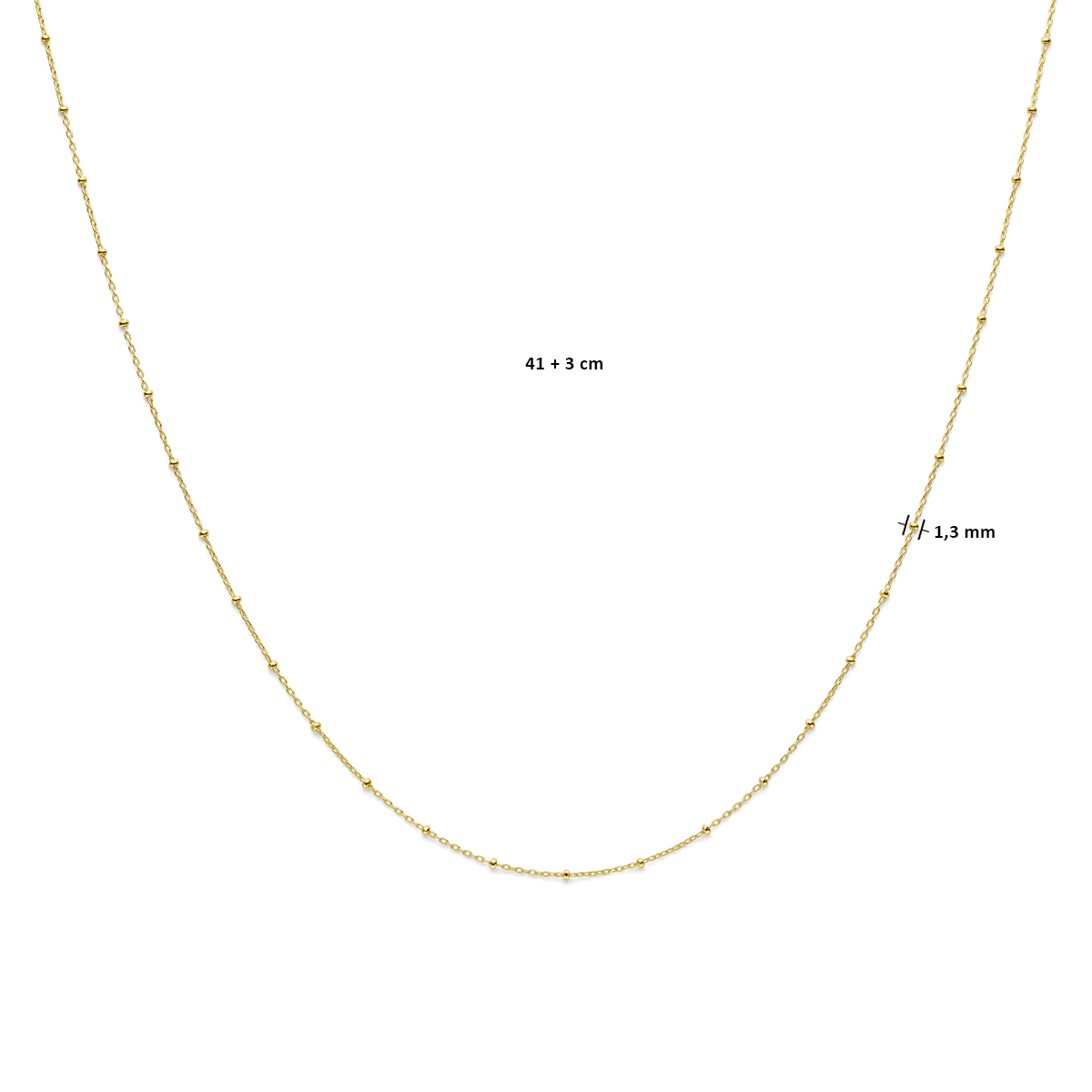14k Geelgouden collier uitgevoerd met bolletjes met een breedte van 1.3mm.