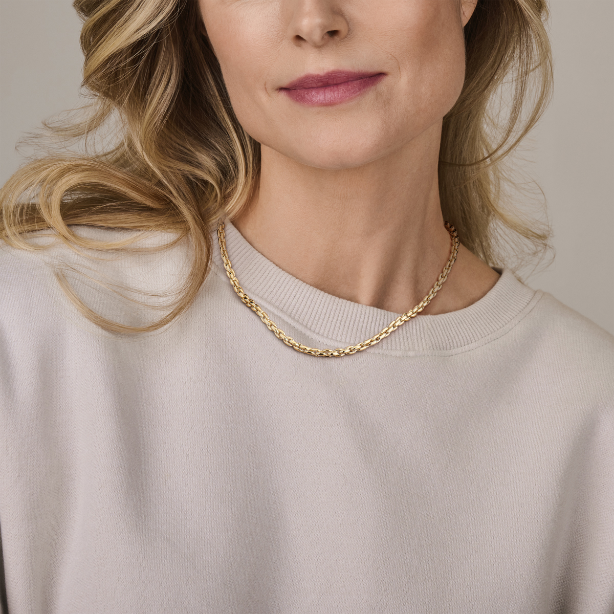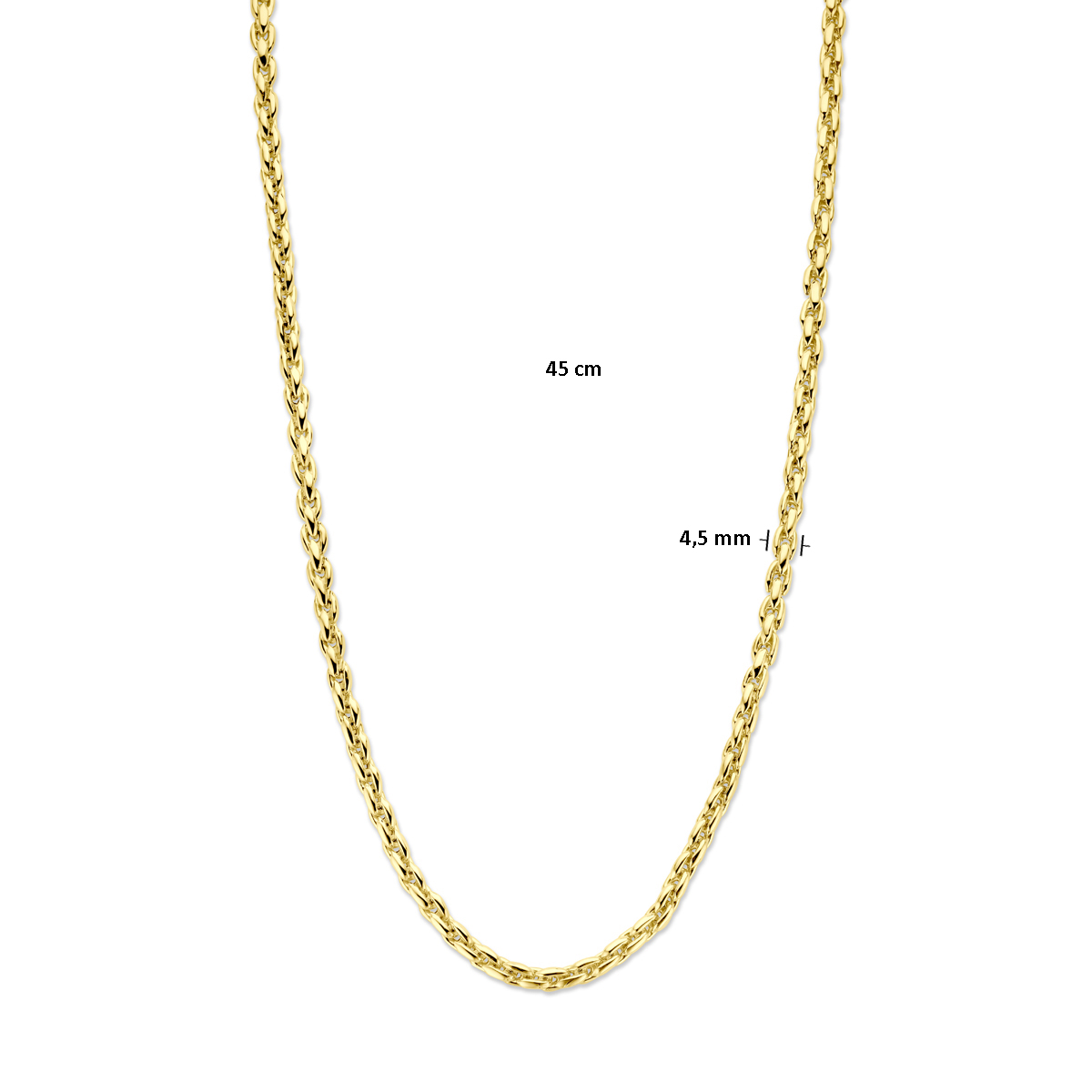 14k Geelgouden collier met een schakelbreedte van 4.5mm en een draaglengte van 45cm.