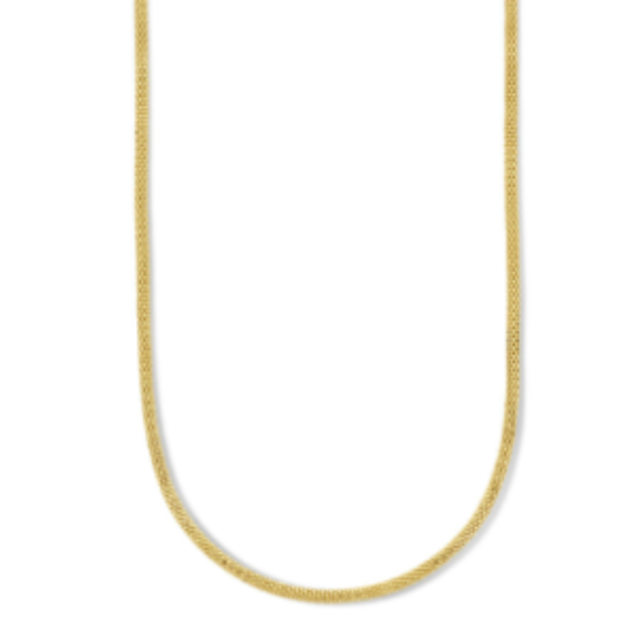 14k Geelgouden collier met een draaglengte van 45cm en een schakelbreedte van 3mm. Uitgevoerd met een karabijn sluiting.