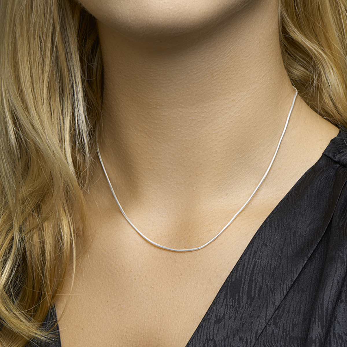 Zilveren slangen collier. De schakelbreedte is 1.4mm.