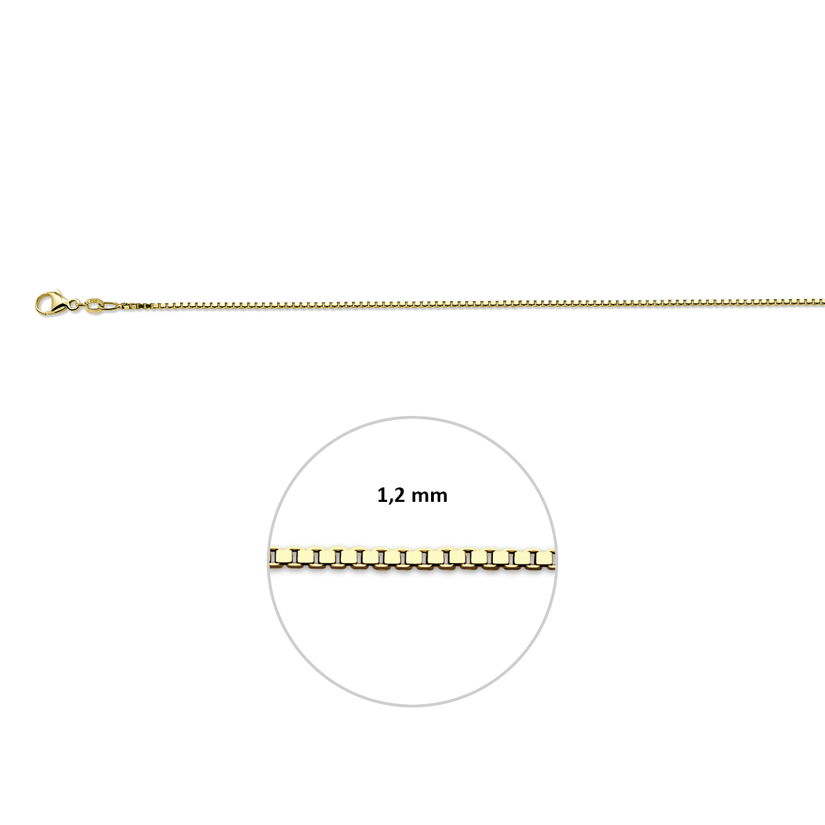 Verguld op 925 zilveren collier met een schakelbreedte van 1,2mm. Het collier heeft een draaglengte van 41cm en een extensie van 4cm. Uitgevoerd met een karabijn sluiting. Geen garantie op plating.