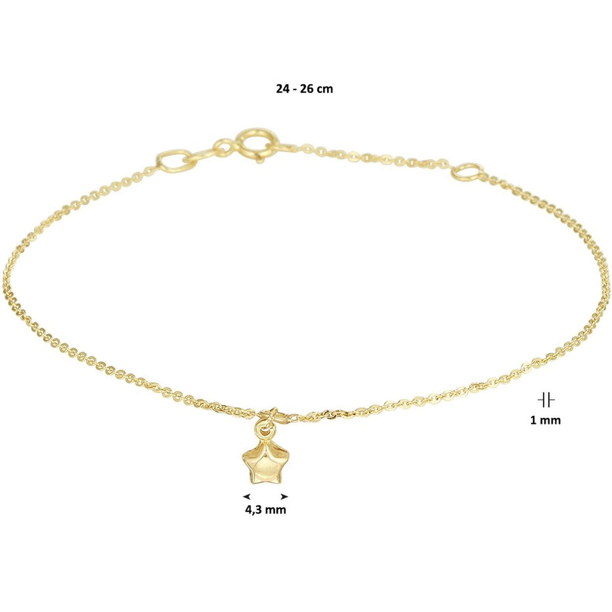 Trendy geelgouden anker enkelbandje met draaglengtes van 24 en 26cm uitgevoerd met een poli afgewerkte ster van 6.3x4.3mm. Tip: Leuk om kado te geven! Zie je ze al stralen?