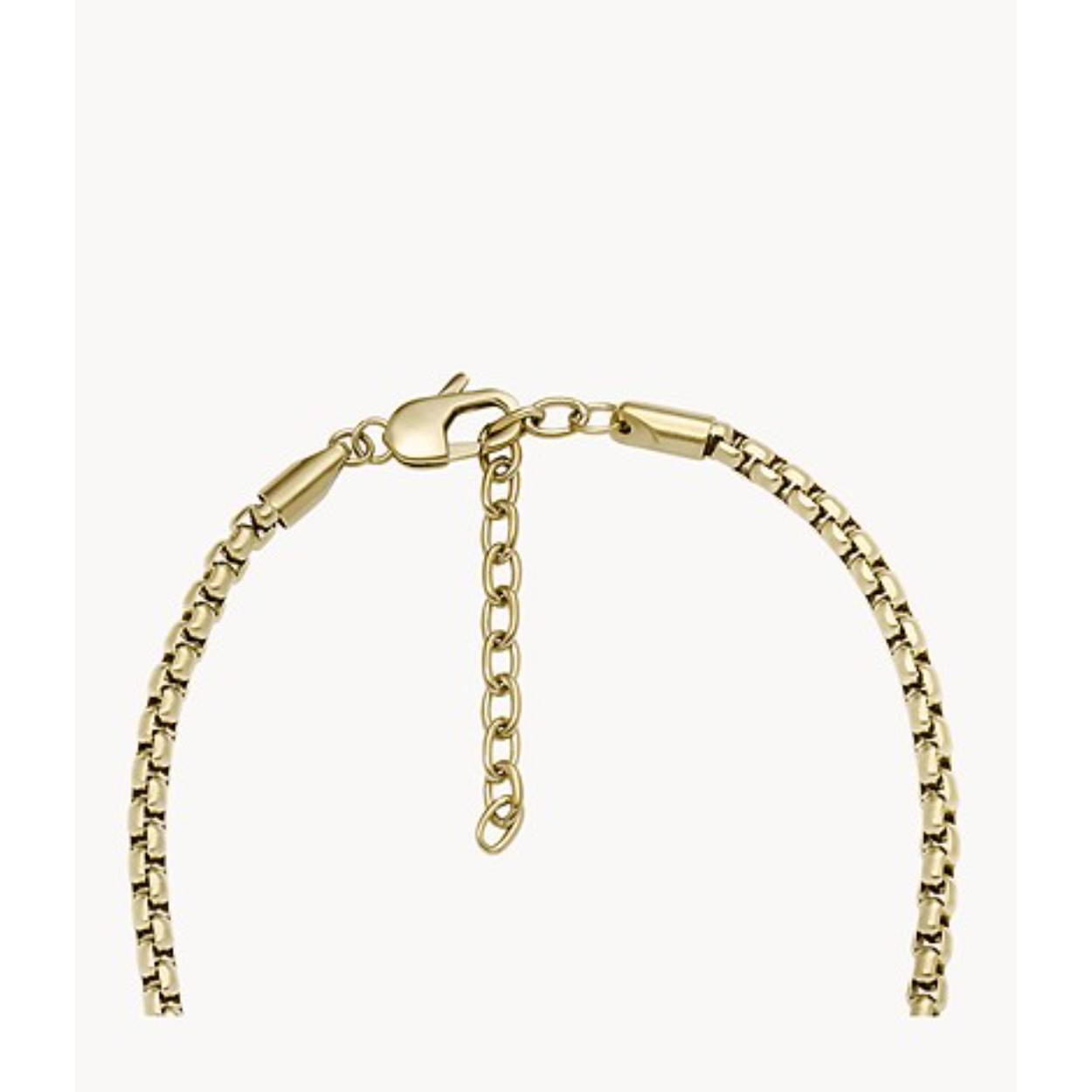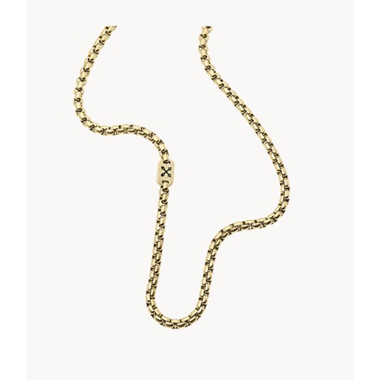 Deze schakelketting is gemaakt van goudkleurig RoestVrij Staal en heeft een karabijnsluiting.