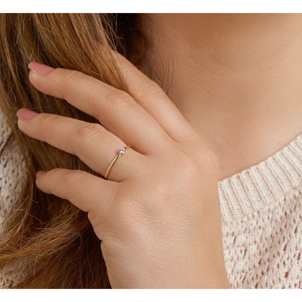 14k Geelgouden ring uitgevoerd met een schitterende zirkonia. De ring heeft een breedte van 3mm.