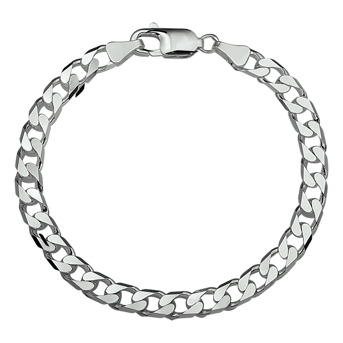 Zilveren lengte artikel met geslepen gourmette schakel. De schakelbreedte is 6.0mm.