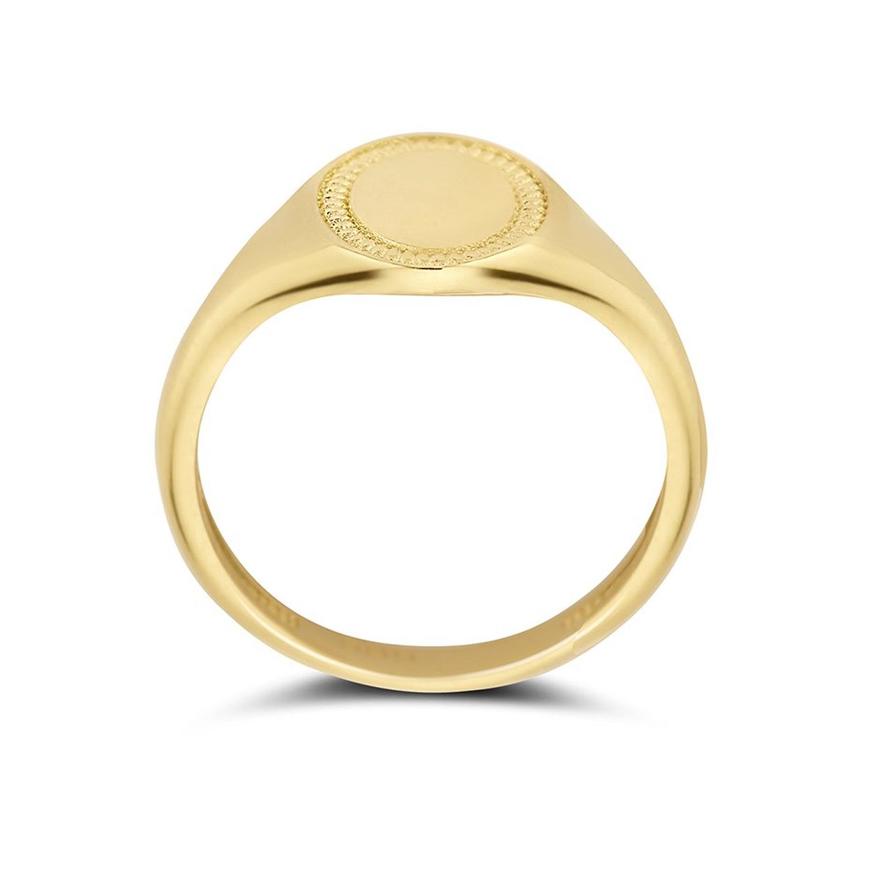 14k Geelgouden graveerring. De ring heeft een breedte van 9.5 mm.