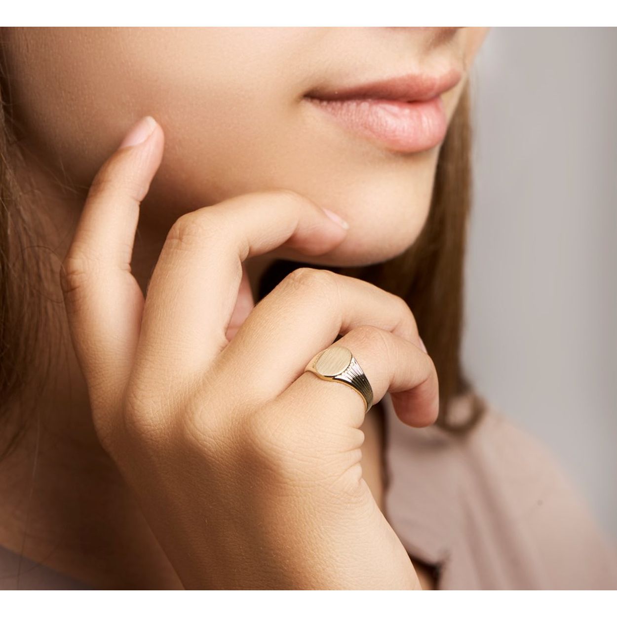 14k Geelgouden graveerring met een afmeting van 10x8mm. De ring geeft je look direct een chique uitstraling.