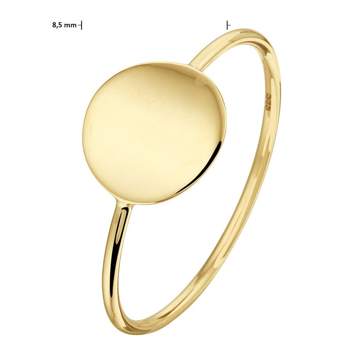 14k Geelgouden graveerring uitgevoerd met een rondje. De ring heeft een breedte van 8.5mm.