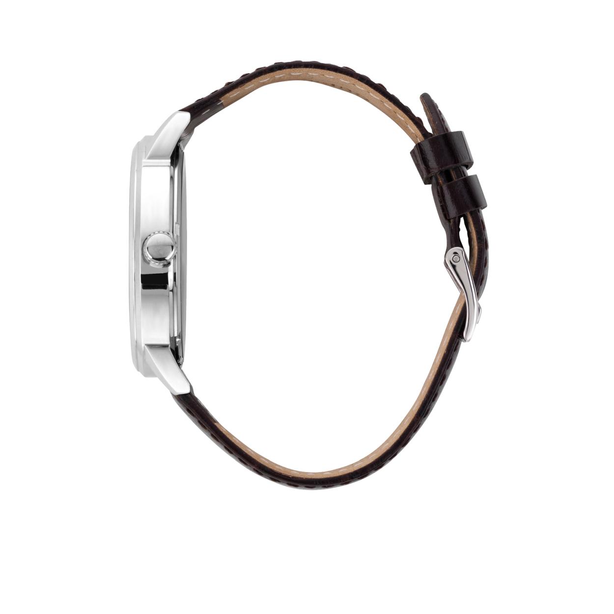 Dit mooie klassieke GUESS Horloge uit de Delancy serie is een analoge horloge met maanstand. De witte wijzerplaat is een echte blikvanger. De zilveren tijdsaanduiding in combinatie met de lunet zorgen voor een chique touch terwijl de chronolook  zorgt dat je dit horloge ook minder gekleed kan dragen. De leren band gaat lang mee en heeft een classy krokoprint.  De kast heeft een diameter van 44 mm. Het horloge heeft een gesp sluiting en is tot 3 ATM Waterdicht. Model: W0870G1