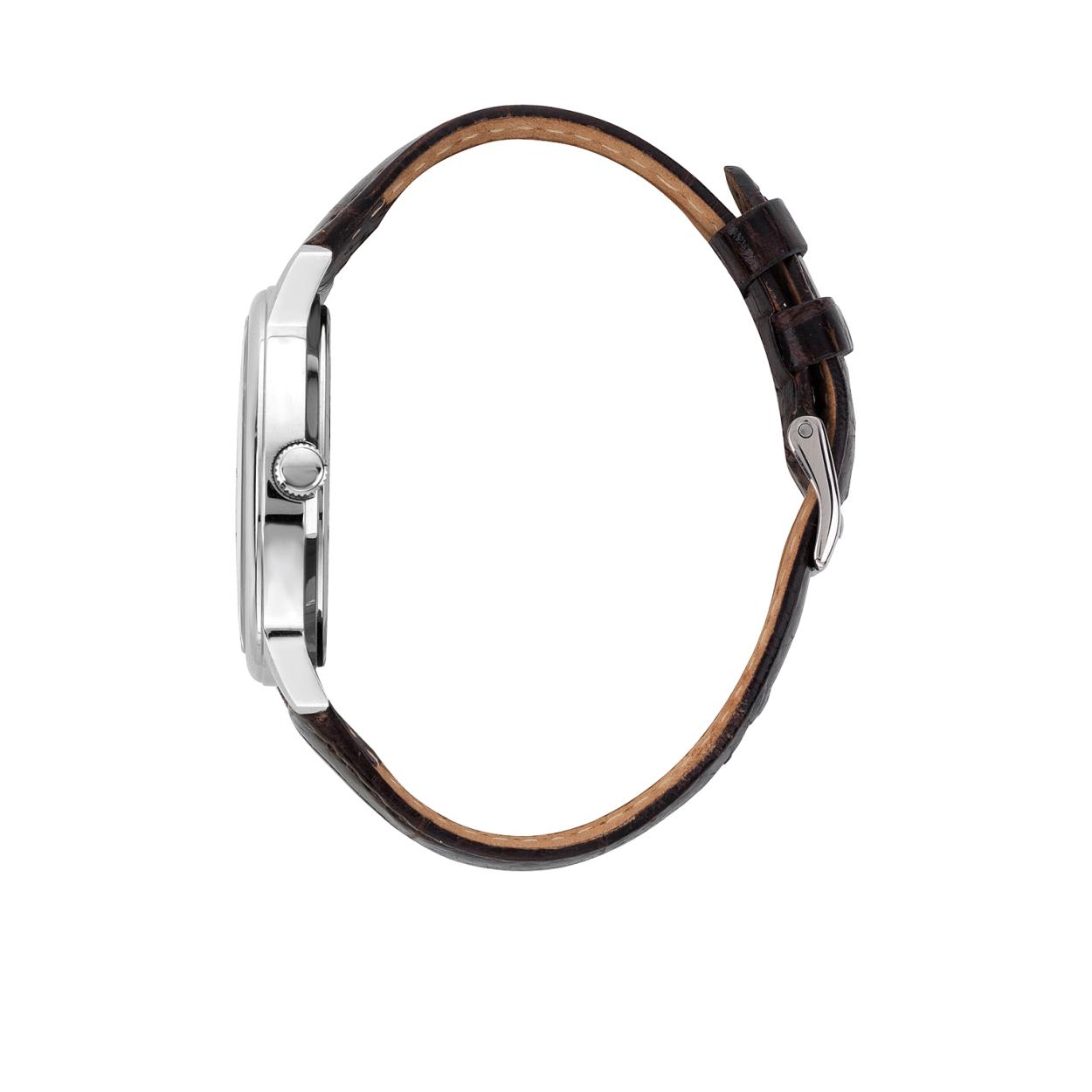 Dit klassieke heren horloge met stalen kast is stijvol en classy. Het horloge heeft een leren band met croco effect, de band is 19 cm lang. De kast heeft een diameter van 39 cm. Het horloge is perfect te combineren bij een pak of stijvolle look. Het horloge is spatwaterdicht. Model: W70016G2