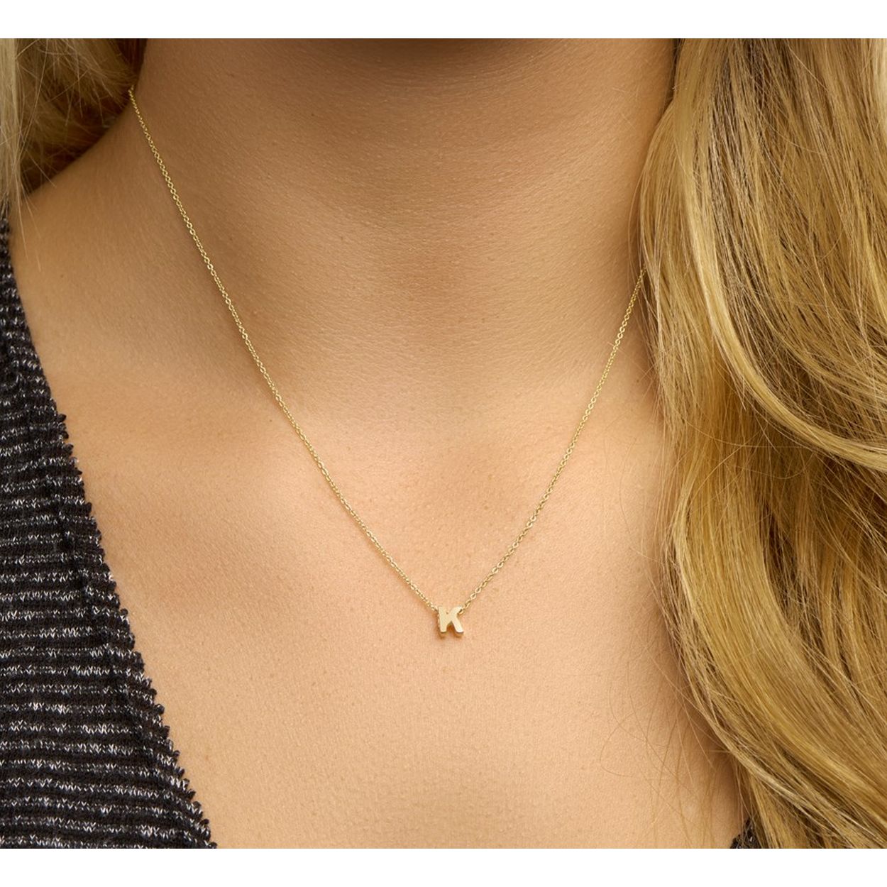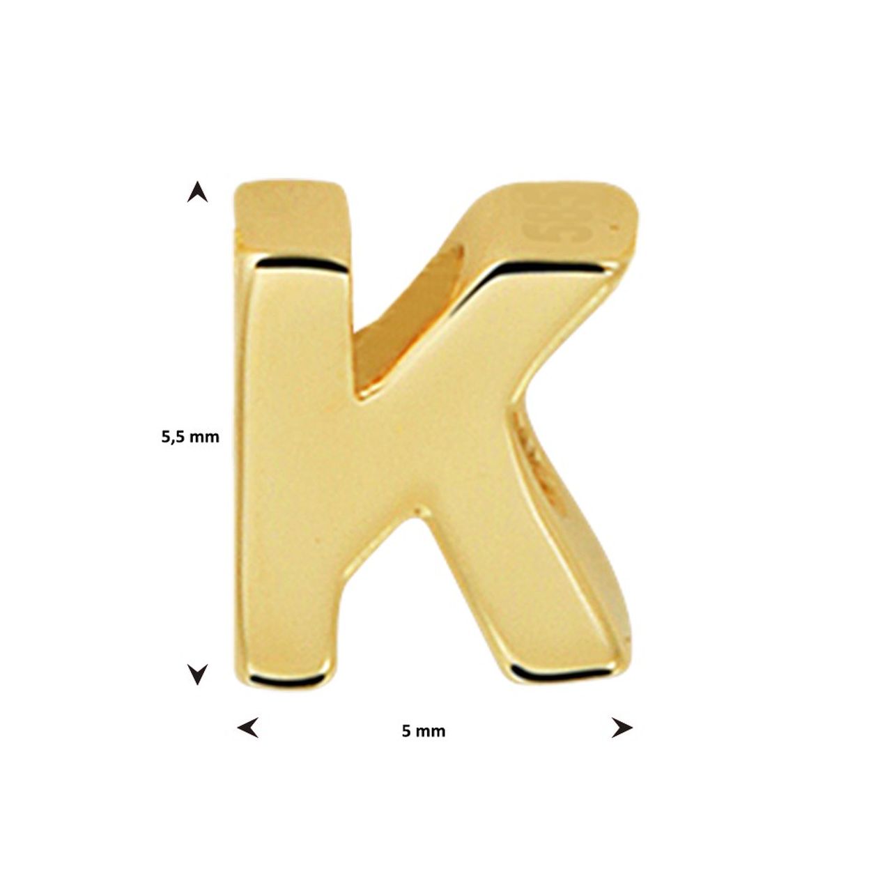 14k Geelgouden hanger uitgevoerd in de letter K. De hanger heeft een afmeting van 5.5x5.0mm.