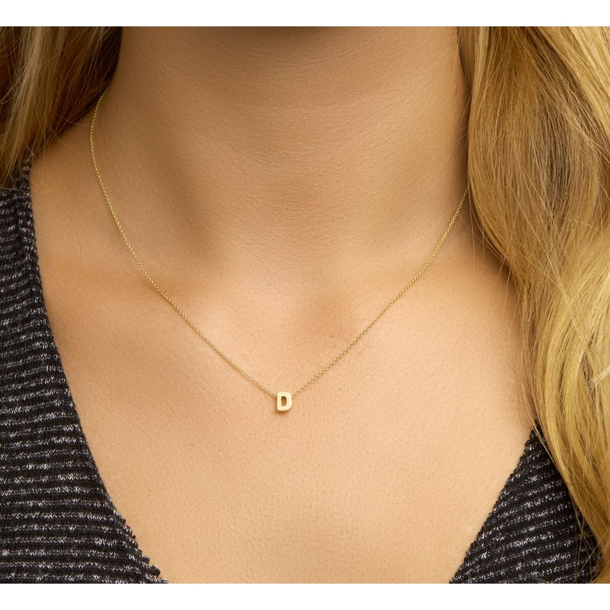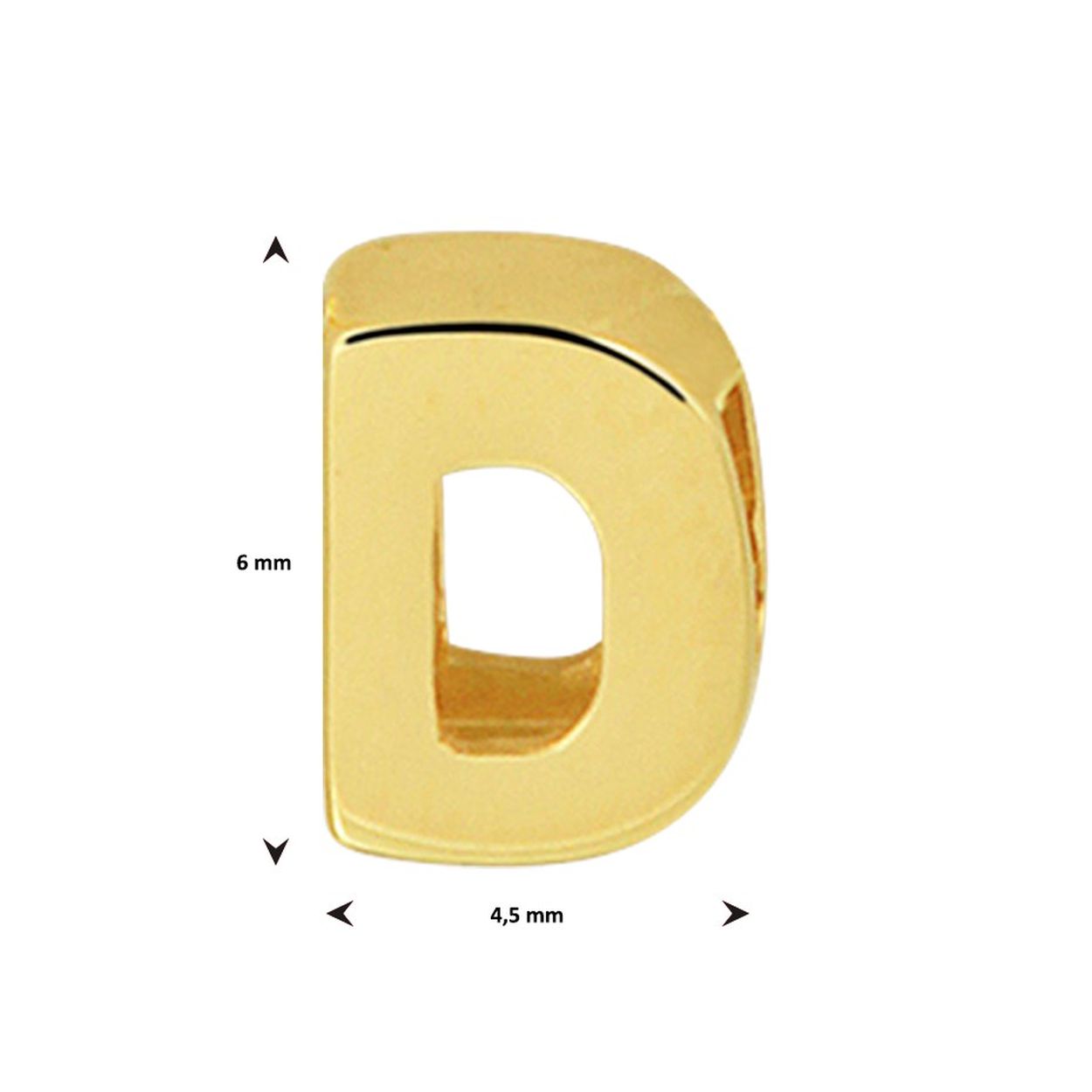 14k Geelgouden hanger uitgevoerd in de letter D. De hanger heeft een afmeting van 6.0x4.5mm.