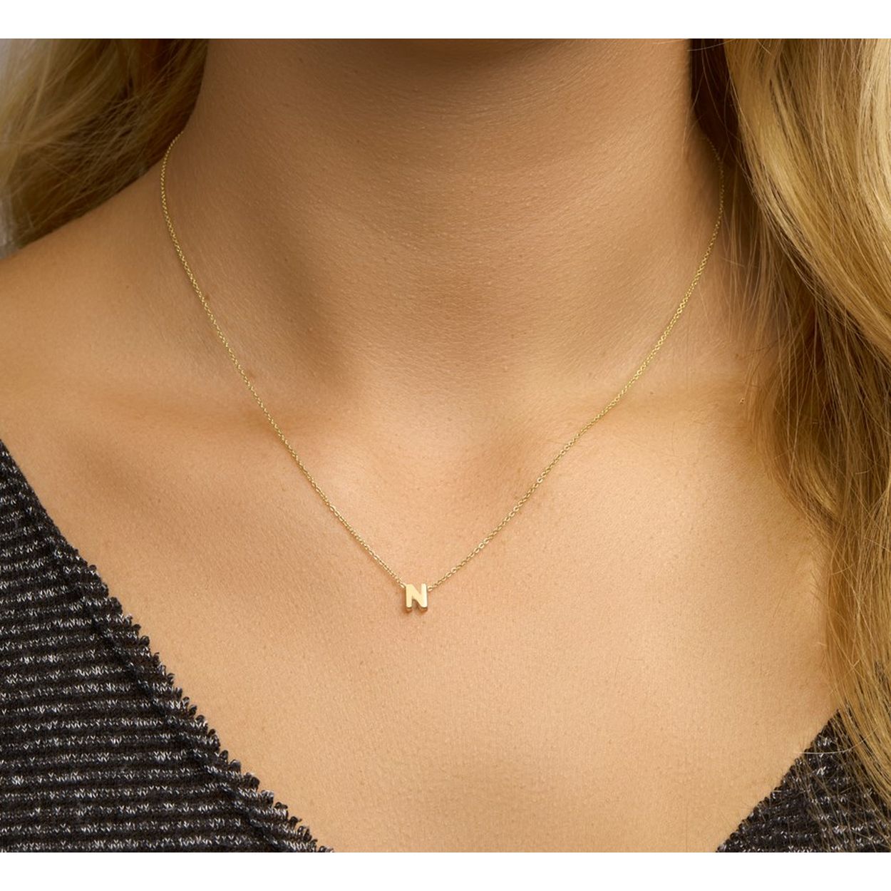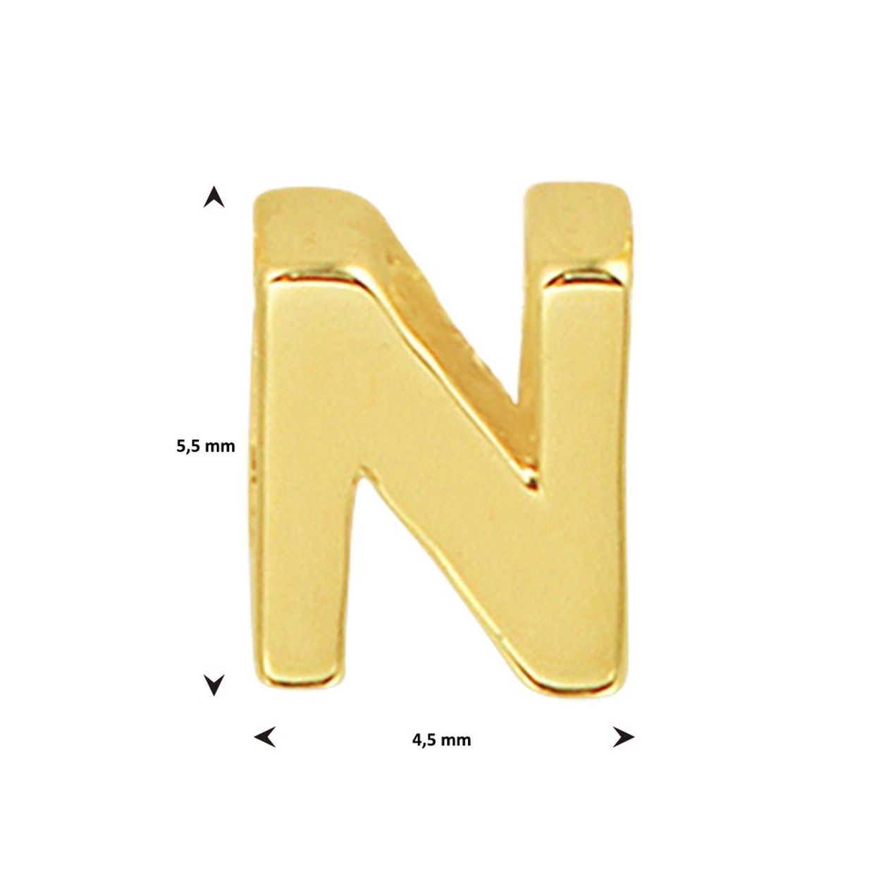 14k Geelgouden hanger uitgevoerd in de letter N. De hanger heeft een afmeting van 5.5x4.5mm.