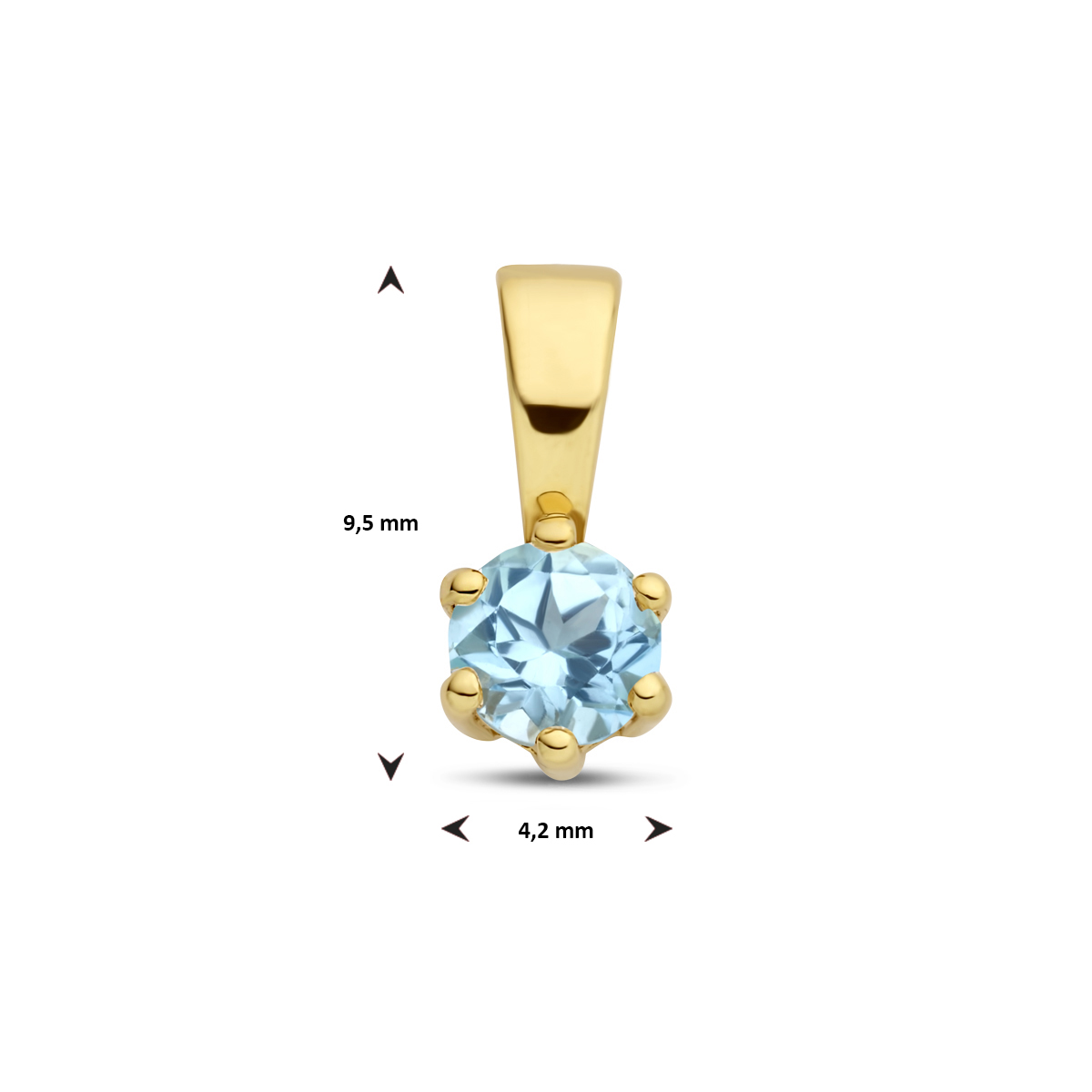 14k Geelgouden geboortesteen hanger uitgevoerd met een schitterende steen. De hanger heeft een afmeting van 9,5x4,2mm.