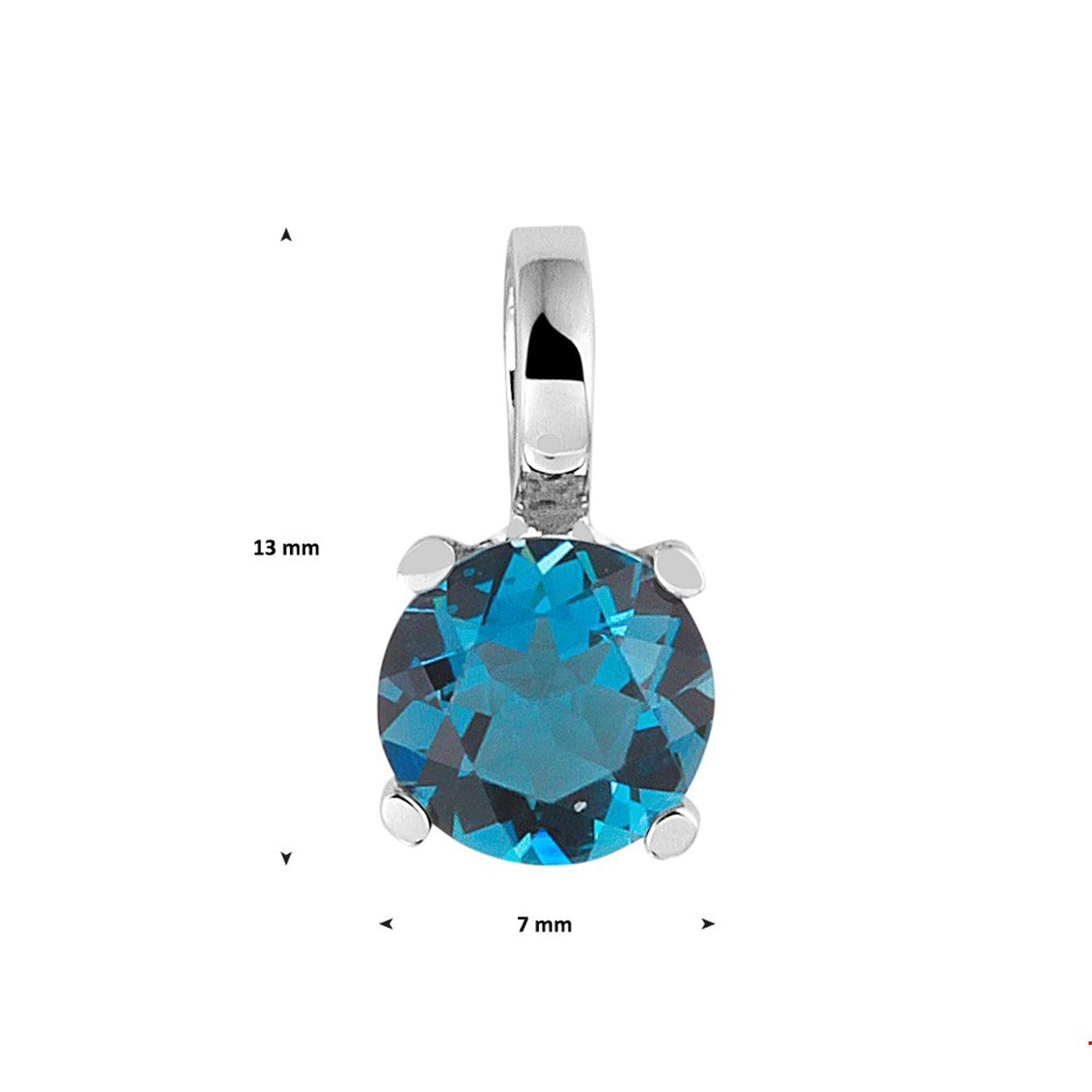 Beschrijving: Stijlvolle witgouden hanger uitgevoerd met een stevig hangoog. De combinatie van witgoud en London blue topaas maken dit sieraad tot een ware eyecatcher. Tip: Leuk om kado te geven! Zie je ze al stralen?