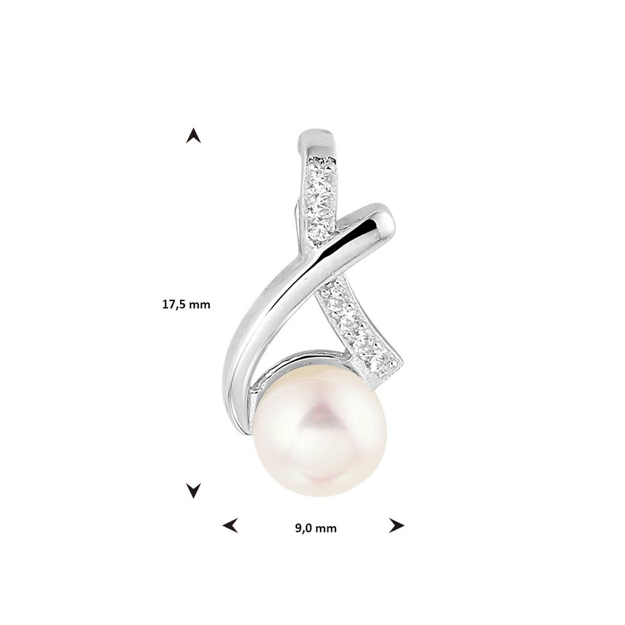 Gerhodineerd 925 zilveren hanger uitgevoerd met een zoetwaterparel en een schitterende zirkonia rij. De hanger heeft een afmeting van 17.5x9mm. De parel heeft een diameter van 6.5mm.