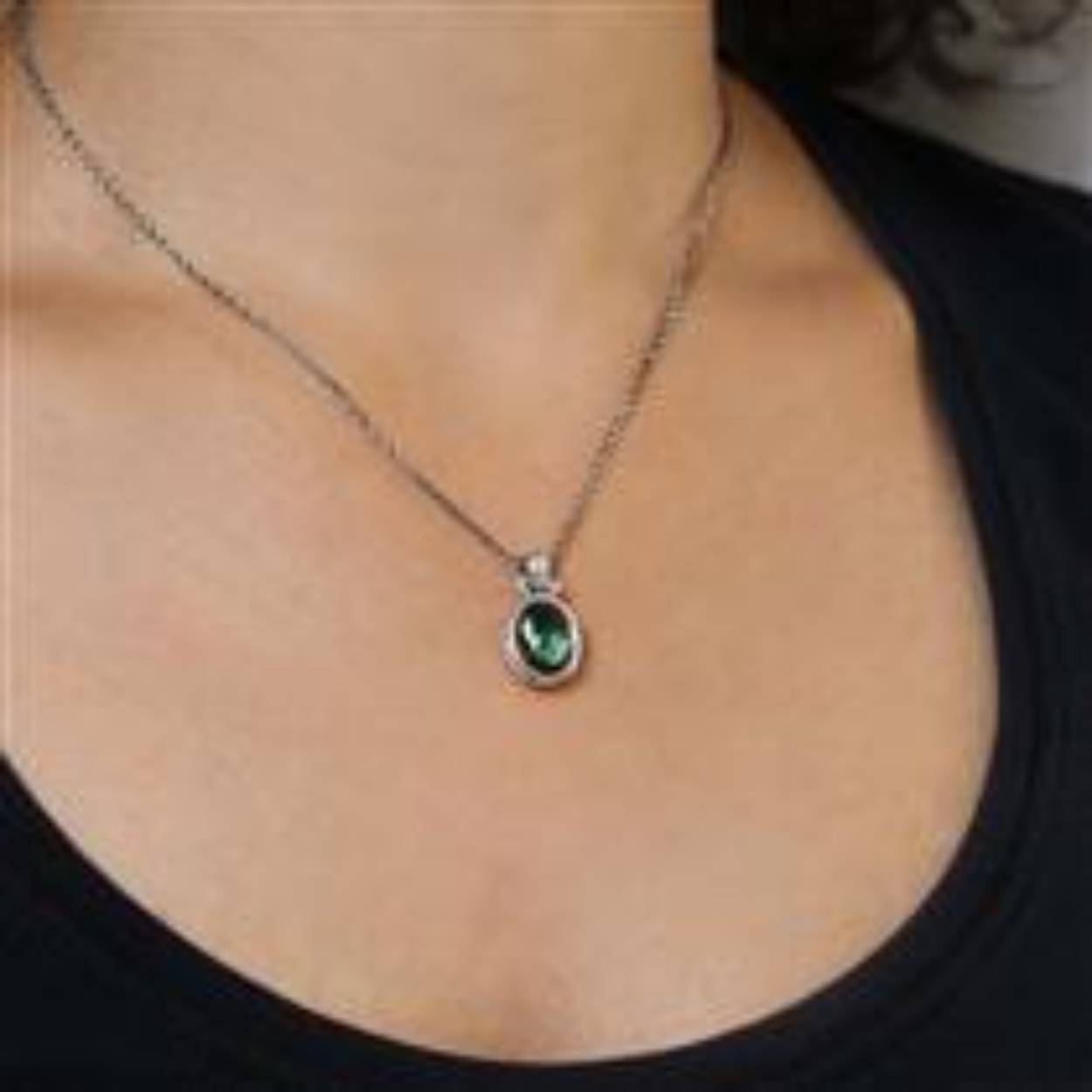 Deze sterling zilveren ketting heeft een mooie hanger met een 10 x 8 mm groene kwarts. De Ketting kan op 42 en 45 cm gedragen worden.
