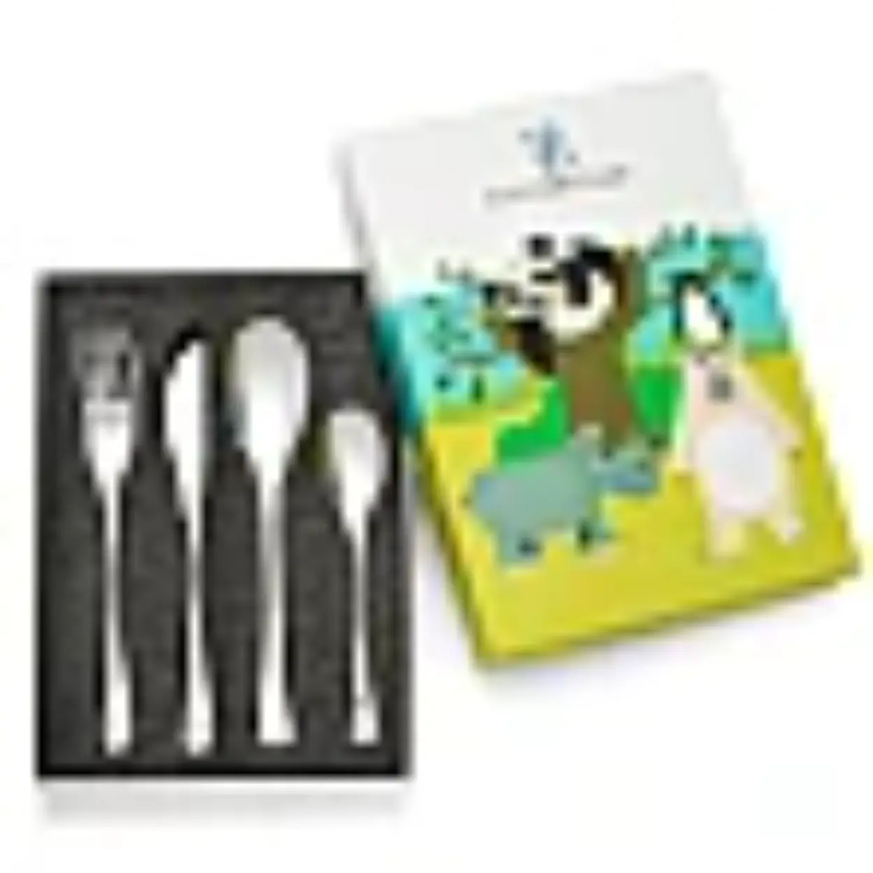 Dit Zilverstad kinderbestek is versierd met de leukste wilde dieren, en welk kind wordt daar niet blij van? Op het mes staat een schattig neushoorn, de vork heeft een vrolijke pandabeer, de grote lepel is versierd met een pinguïn en op het kleine lepeltje staat een schattig beertje. Dit vrolijke bestek zorgt zeker voor blije gezichten aan tafel!