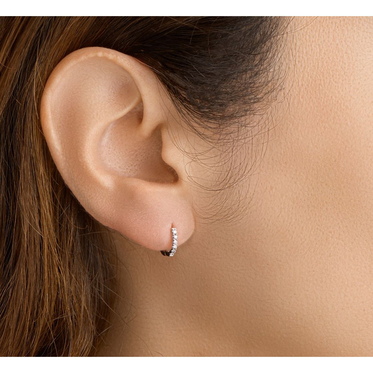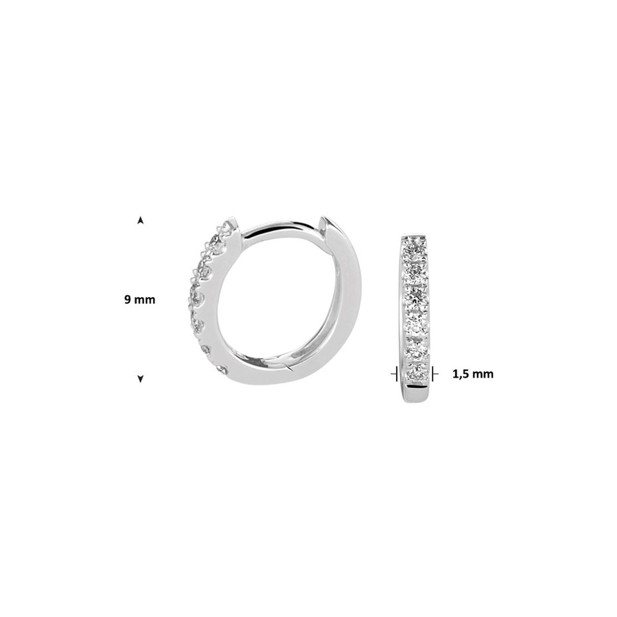 14k Witgouden oorringen met scharnier uitgevoerd met een schitterende diamant rij. De oorringen hebben een afmeting van 9x1.5mm.