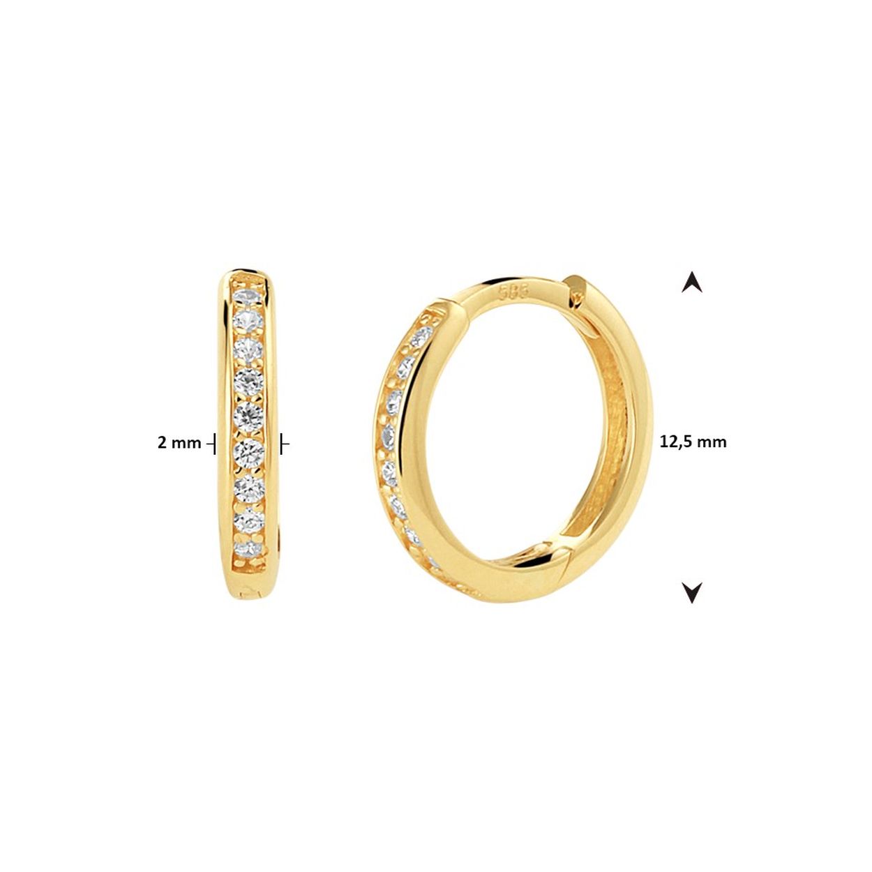 14k Geelgouden klapoorringen uitgevoerd met een schitterende zirkonia rij. De klapoorringen hebben een breedte van 2mm.