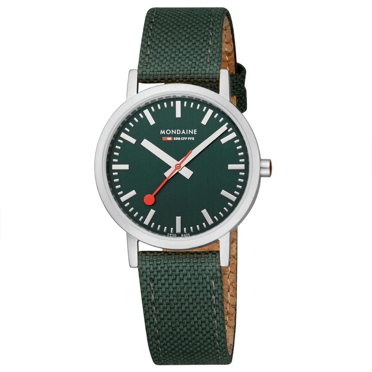 Mondaine M660.30314.60SBF Horloge - Textiel - Groen - 36mm