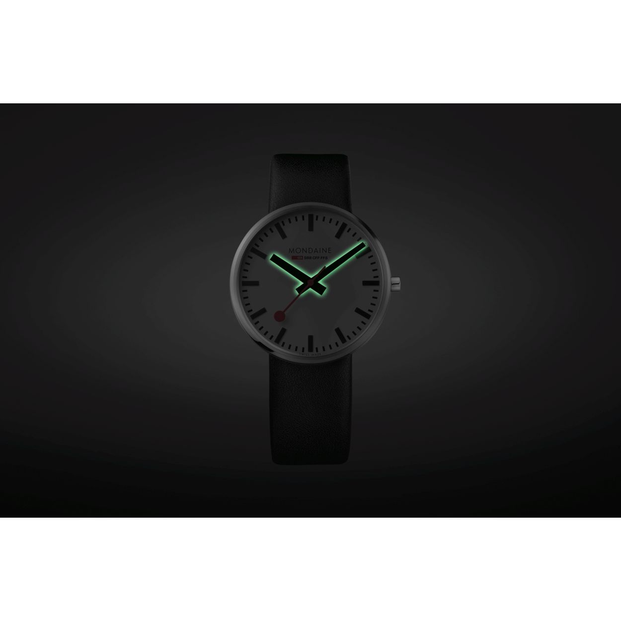 Dit designhorloge uit de Mondaine Giant serie is een stijlvol horloge uit de �Official Swiss Railways Watch� serie. Het horloge heeft licht gebold gehard mineraalglas en een licht gebolde glanzende horlogekast met een kastdiameter van 42 mm. De band van het horloge is van leer.