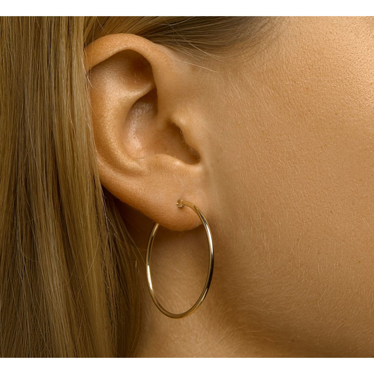 14k Geelgouden oorringen. De oorringen hebben een afmeting van 33x1.5mm.