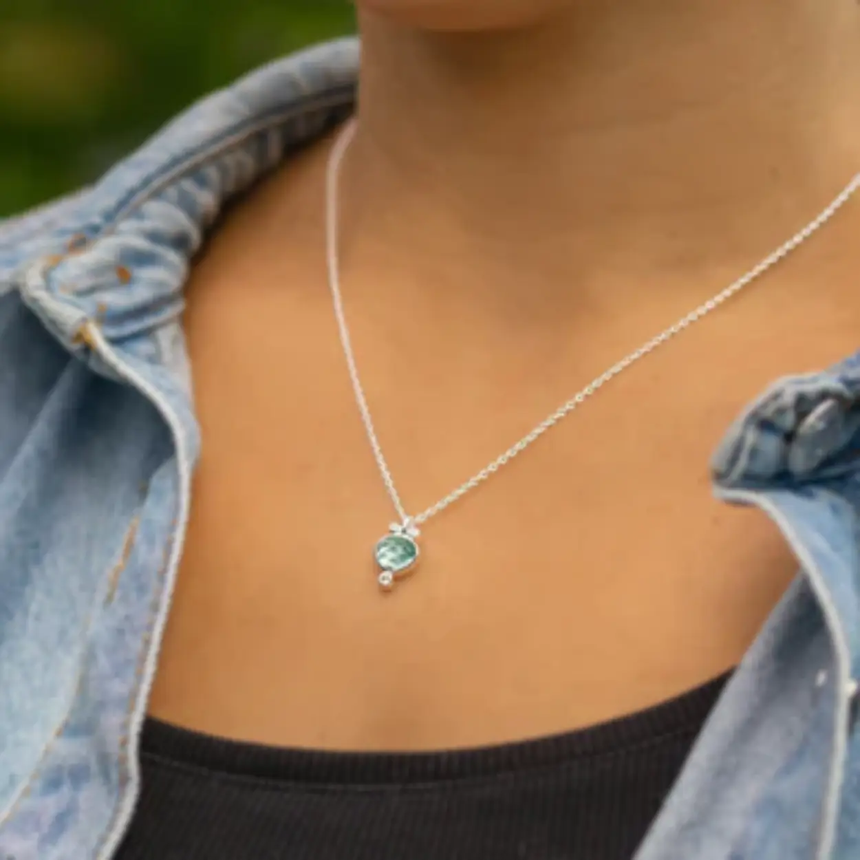Zilveren Rabinovich collier Calm Creek met blauwe kwarts, peridot en zirkonia. De lengte is verstelbaar van 42-45 cm.