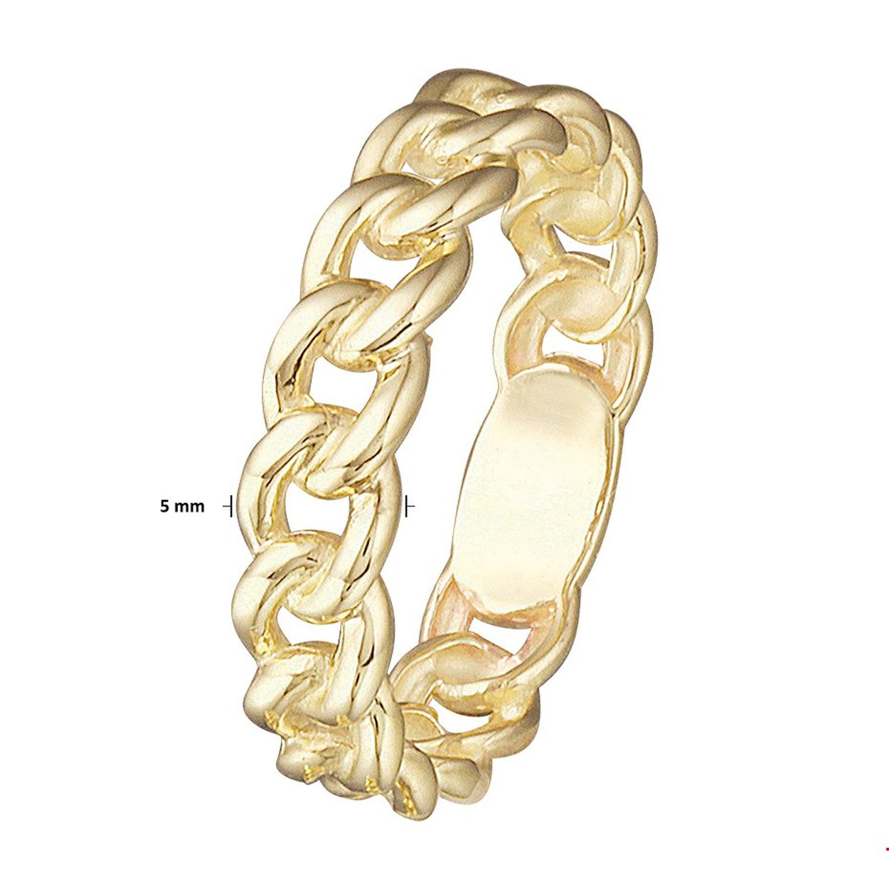 Geelgouden ring met een schakelmotief en een poli afwerking. De ring is goed te combineren met bijpassende schakelmotief sieraden uit onze collectie.