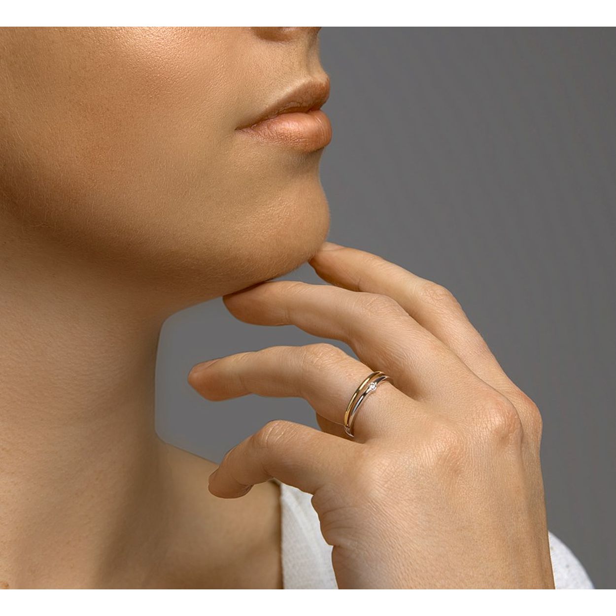 14k Bicolor geel- en witgouden ring uitgevoerd met een schitterende diamant. De ring heeft een breedte van 4mm.