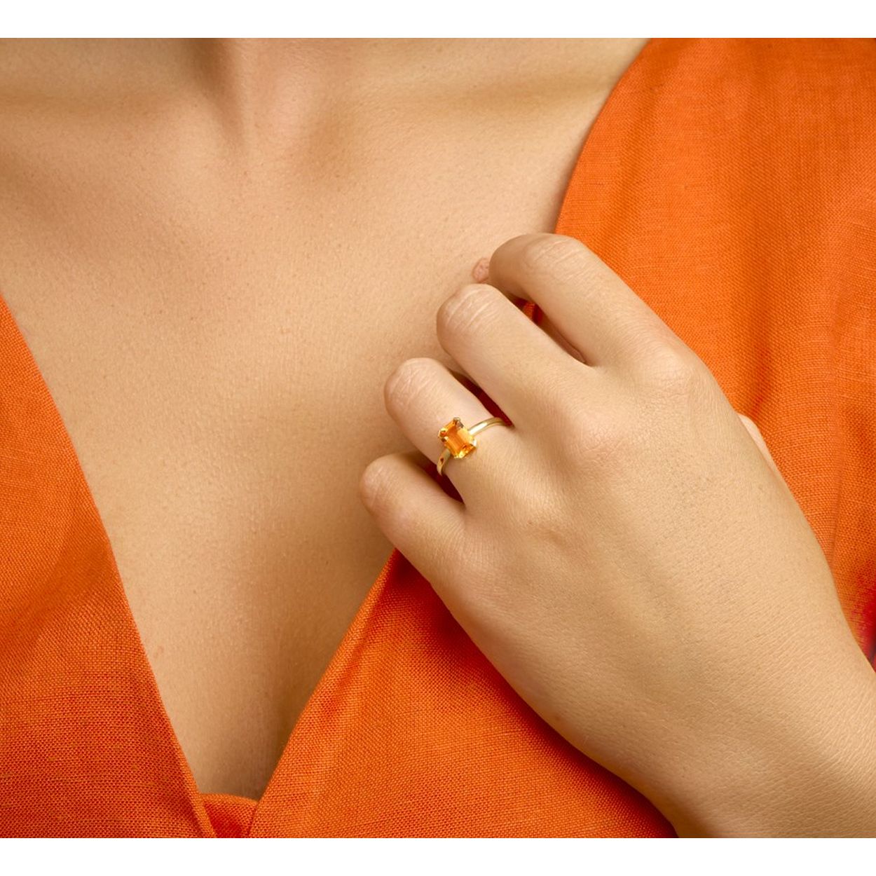 14k Geelgouden ring uitgevoerd met een schiterende citrien. De ring heeft een breedte van 8,5mm. De citrien heeft een afmeting van 8x6mm.