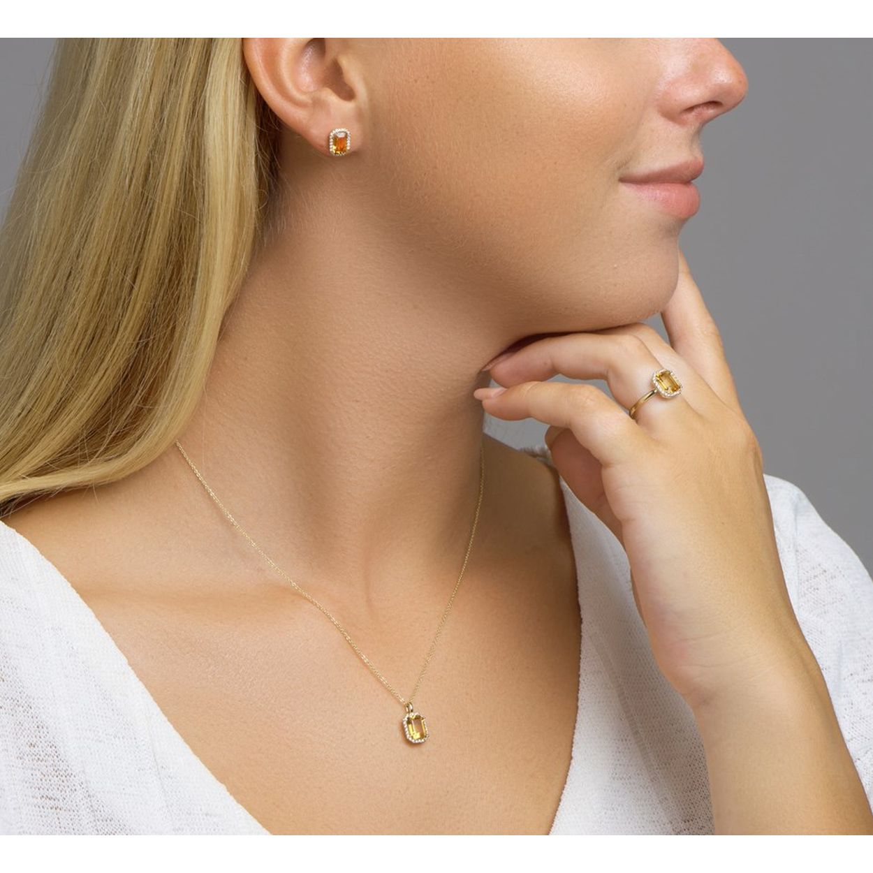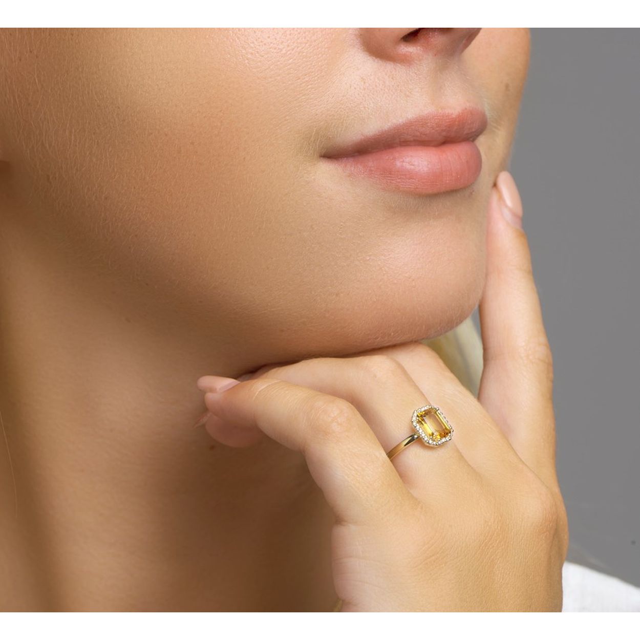 14k Geelgouden ring uitgevoerd met een schitterende diamant rij en een citrien. De ring heeft een breedte van 10.5mm.