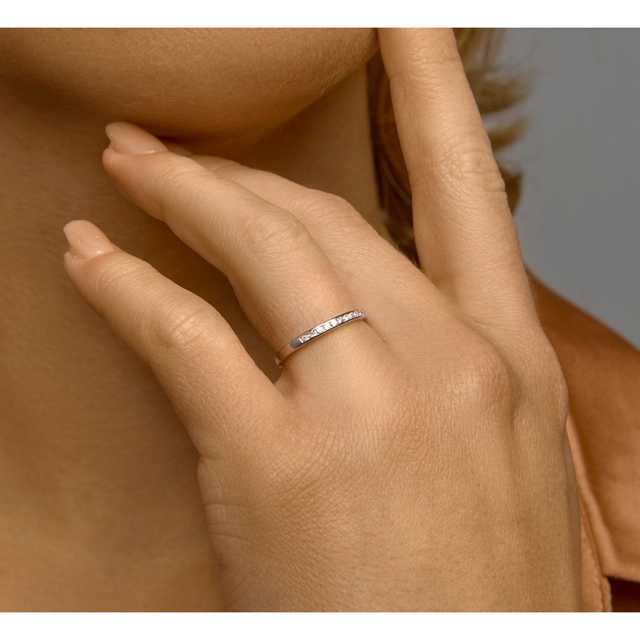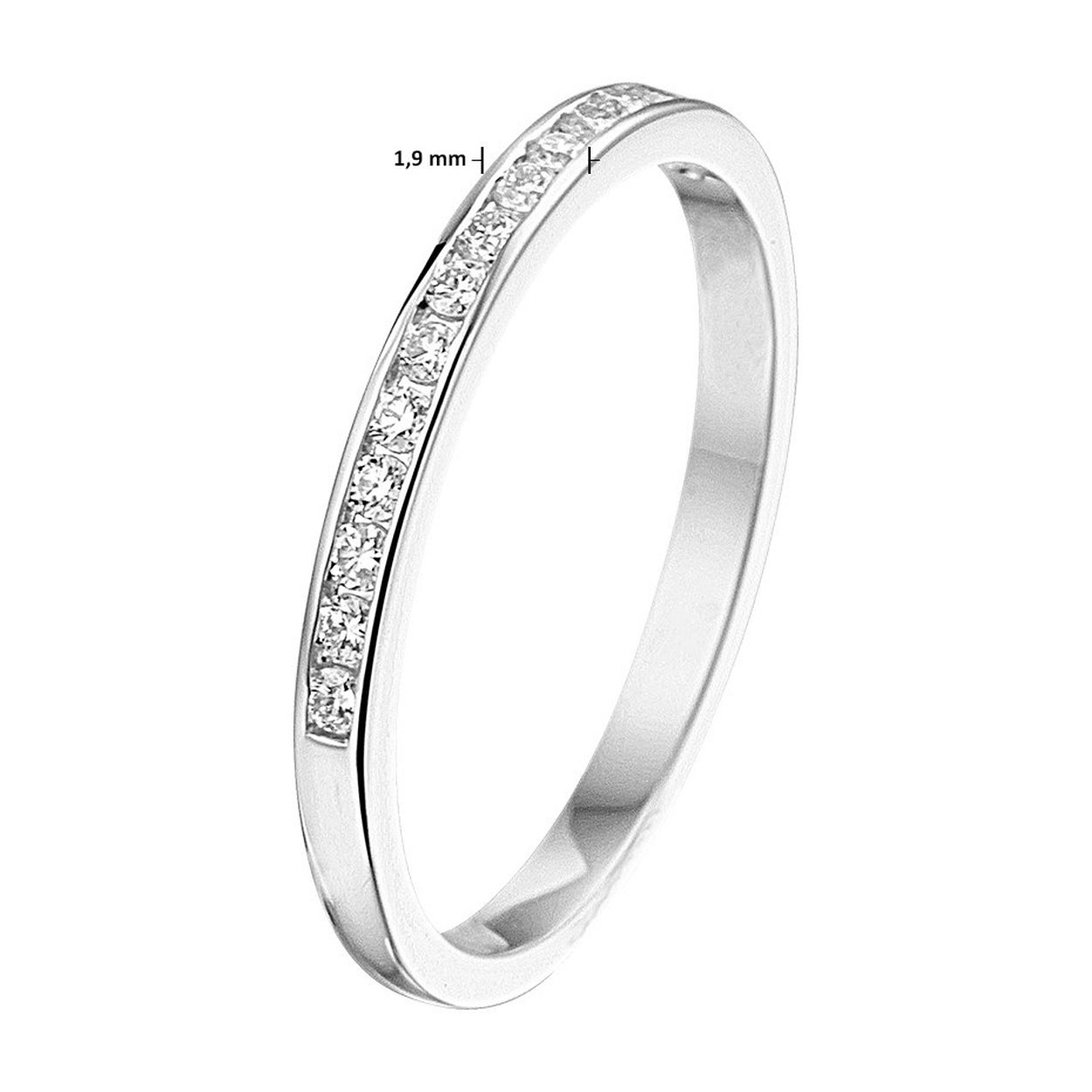14k Witgouden ring met palladium legering. De ring is uitgevoerd met een schitterende diamant rij en heeft een breedte van 1.9mm.