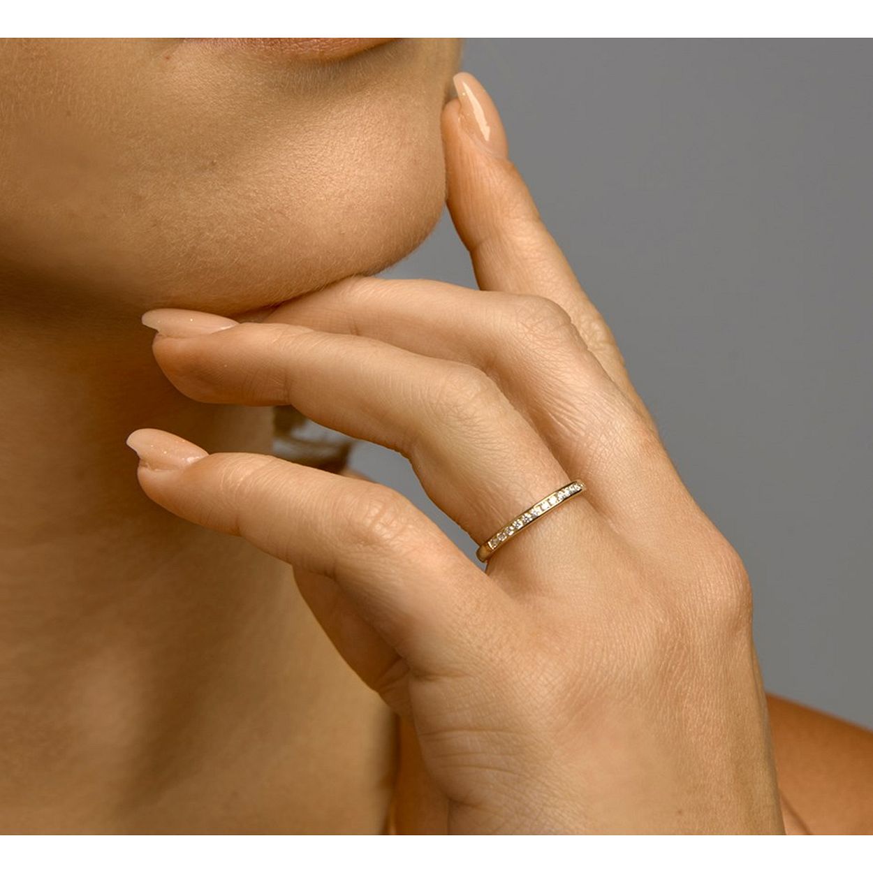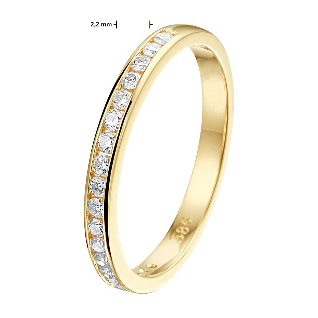 14k Geelgouden ring uitgevoerd met een schitterende diamant rij. De ring heeft een breedte van 2.2mm.