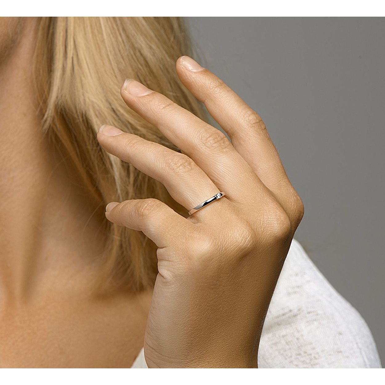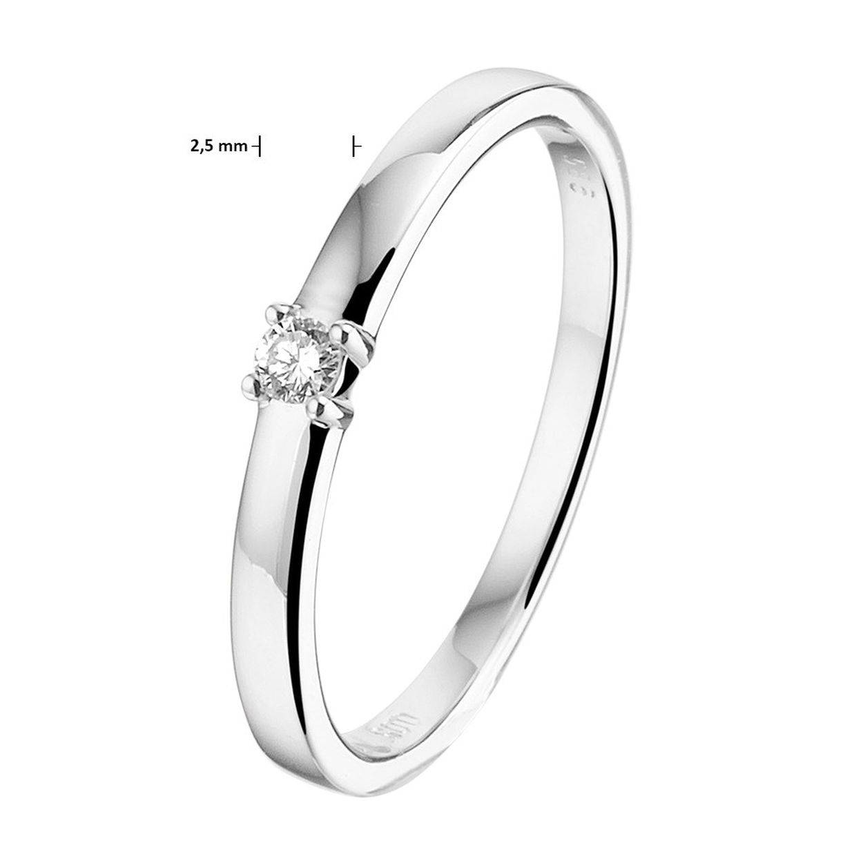 14k Witgouden ring uitgevoerd met een schitterende diamant. De ring heeft een breedte van 2.5mm.