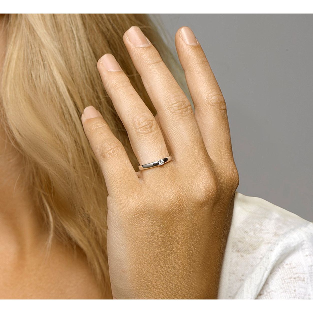 14k Witgouden ring uitgevoerd met een schitterende diamant. De ring heeft een breedte van 3mm.