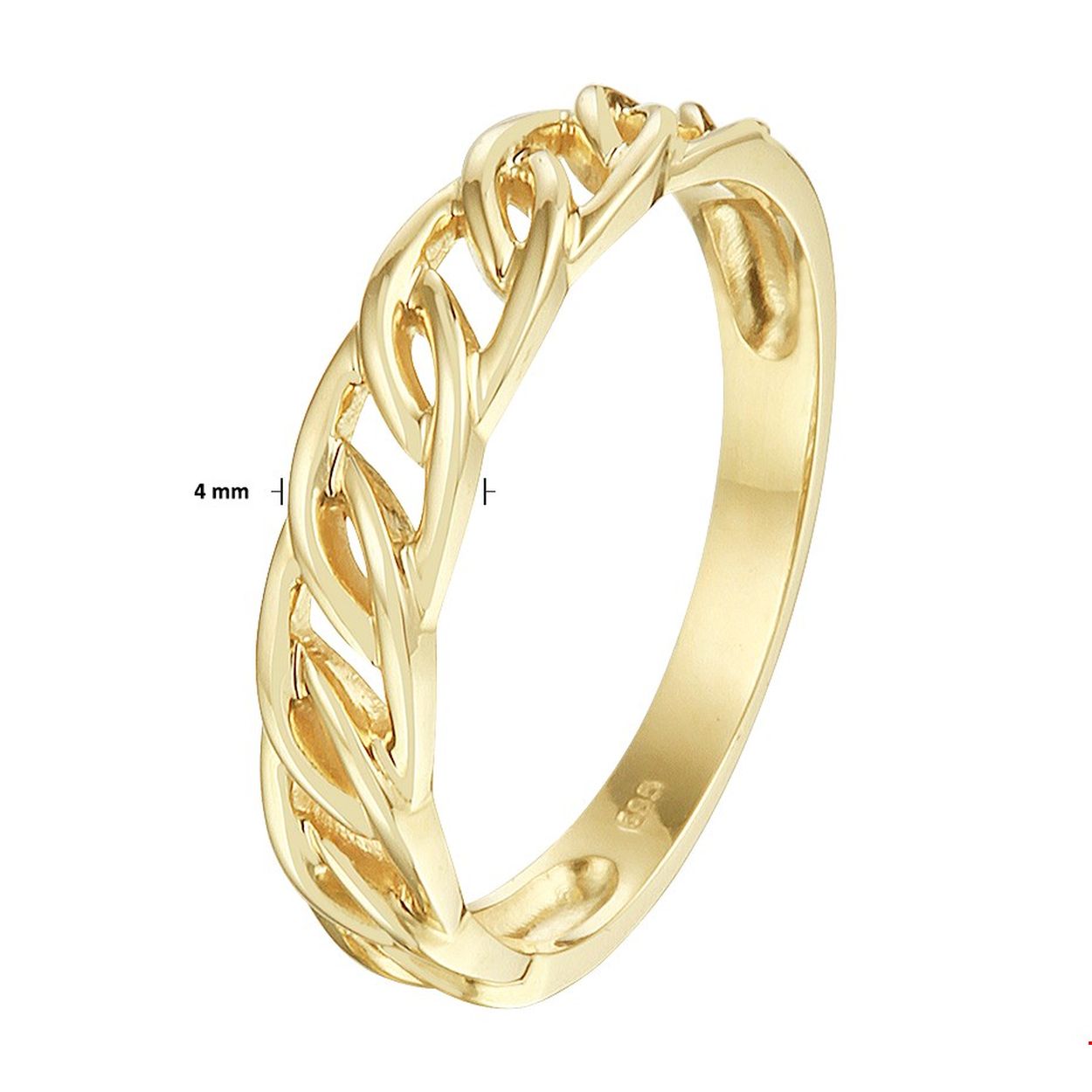 Stijlvolle geelgouden ring met een breedte van 4mm uitgevoerd met een schakelmotief. Minimalistisch design voor een exclusieve uitstraling.