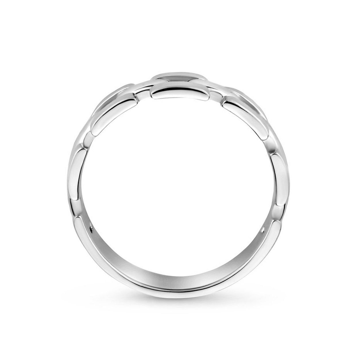 Gerhodineerd 925 zilveren ring uitgevoerd met schakelmotief. De ring heeft een breedte van 5.5mm.