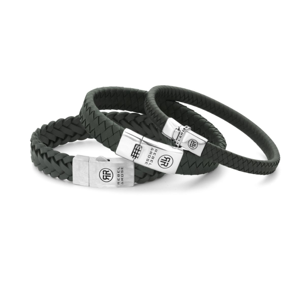 De Small Braided armband van Rebel and Rose is een handgemaakte armband met volledig zilveren sluiting. Het donkergroene leer is 7mm breed en met veel zorg en vakmanschap gelooid door de ambachtslieden van Rebel and Rose