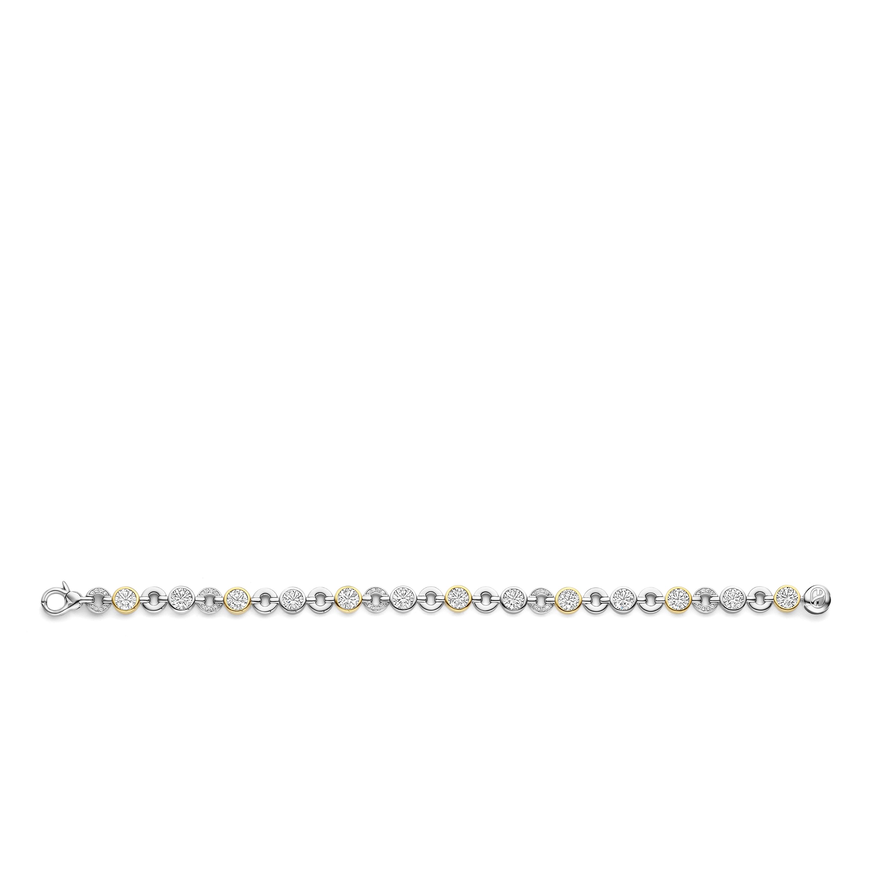 Tijdloze elegantie ontmoet eigentijds vakmanschap in deze klassieke TI SENTO armband 23054ZY. Vakkundig vervaardigd uit premium 925 sterling zilver, biedt dit sieraad een verbluffend samenspel van gouden- en zilvergekleurde tinten. Bezelgezette cubic zirconia stenen stralen schittering uit, afwisselend tussen luxe vergulde accenten.