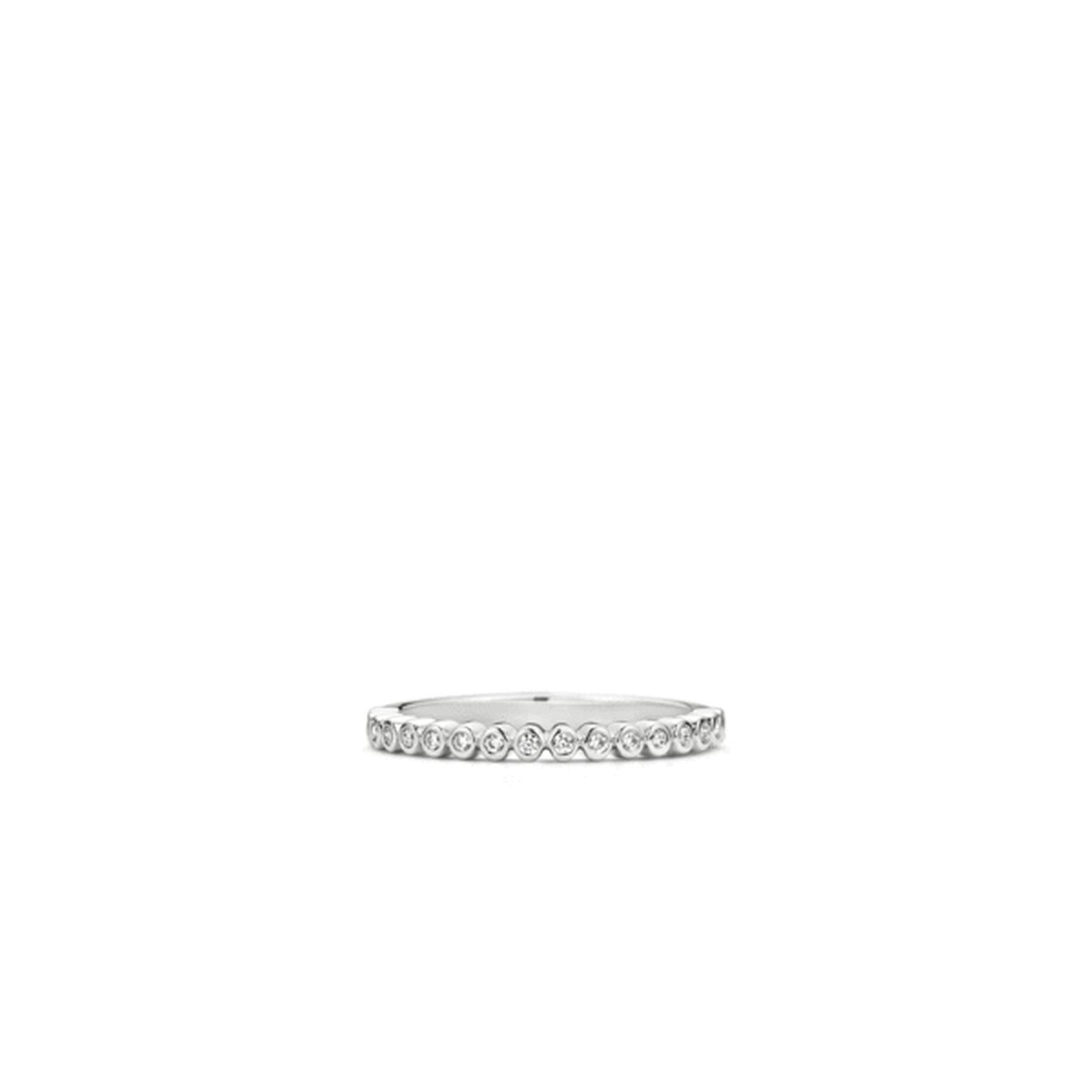 Deze stijlvolle TI SENTO - Milano ring blinkt uit door zijn simpele eenvoud. De briljant geslepen zirkonia's zijn in een bezel zetting tegen elkaar aan geplaatst. De witte zirkonia's zijn aan de voorzijde van de ring geplaatst. De ring is gemaakt van gerhodineerd sterling zilver. De rhodiumlaag over het zilver zorgt voor een extra glans en een langere levensduur van het sieraad. Deze ring kan alleen worden gedragen maar past ook binnen het TI SENTO Mix & Match concept. Een ring met parel staat mooi bij deze fijnzinnige ring.