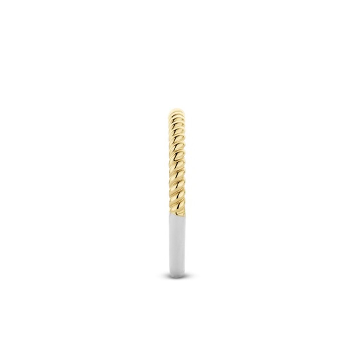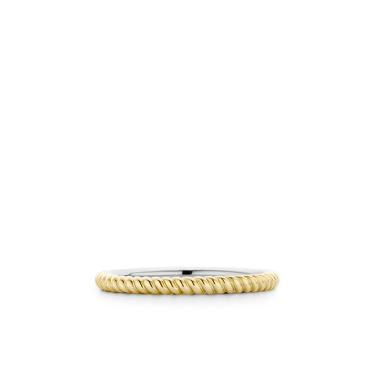 Deze iconische TI SENTO - MiIano ring is de ultieme musthave om mee te combineren bij het stapelen van ringen. Het gedraaide zilver in de strakke uitvoering van de ring zorgt voor een naadloze aansluiting op andere ringen. Een topper binnen het TI SENTO Mix & Match concept. De designers hebben een top ontwerp in een nieuw jasje gestoken. De geelgouden kleur geeft de ring meer spice. De ring is gemaakt van gerhodineerd sterling zilver wat de ring extra bescherming geeft en een mooie glans. De ring voldoet aan de goudsmid standaard en is met veel zorg gemaakt.