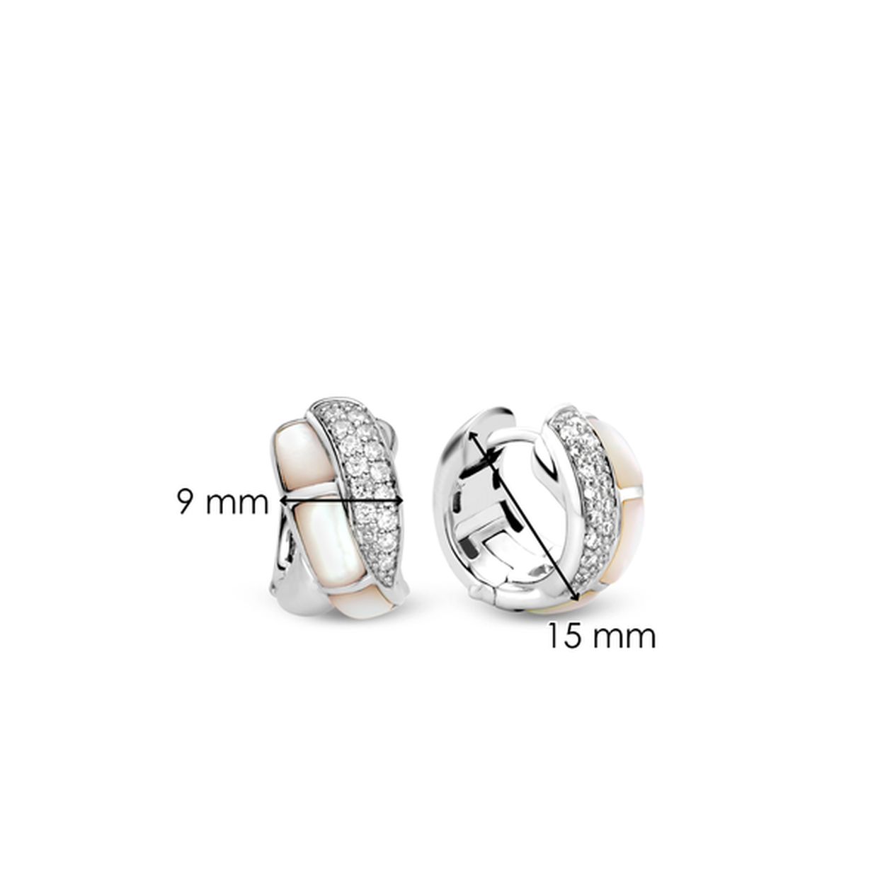 Parelmoer is al jaren een favoriet in de TI SENTO - Milano sieraden maar in deze oorbellen vernieuwd toegepast. De combinatie van parelmoer pav�gezet zirconia en gladgepolijst zilver komt goed tot zijn recht door het golvende patroon waarin het is verwerkt. De verschillende banden lijken over elkaar heen te golven. Zoals alle TI SENTO sieraden zijn de oorbellen gemaakt van gerhodineerd sterling zilver. De rhodiumlaag beschermt het zilver tegen natuurlijke verkleuring en geeft het een langdurige glans. In de TI SENTO collectie zijn verschillende bijpassende sieraden verkrijgbaar volgens het Mix & Match concept.